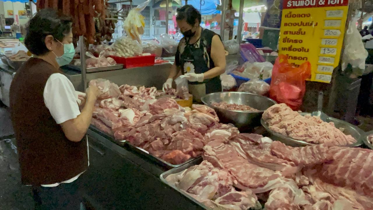 นางอรทัย นุชตะลัย อายุ 61 ปี แม่ค้าขายหมู กล่าวว่า หมูหน้าฟาร์มวันนี้กิโลกรัมละ 106 บาท จากเดิมอาทิตย์ที่ผ่านมา 100 บาท และมีแนวโน้มที่จะปรับสูงขึ้นโดยไม่มีท่าทีที่จะลดลง ขณะที่ราคาหมูหน้าร้านที่ให้บริการวันนี้สันคอ สันนอก สันใน สามชั้น และกระดูกแก้ว อยู่ที่กิโลกรัมละ 240 บาท จากเดิม กิโลกรัมละ 200 บาท หมูเนื้อแดง และ ซี่โครงหมู ราคากิโลกรัมละ 200 บาท จากเดิมกิโลกรัมละ 190 บาท