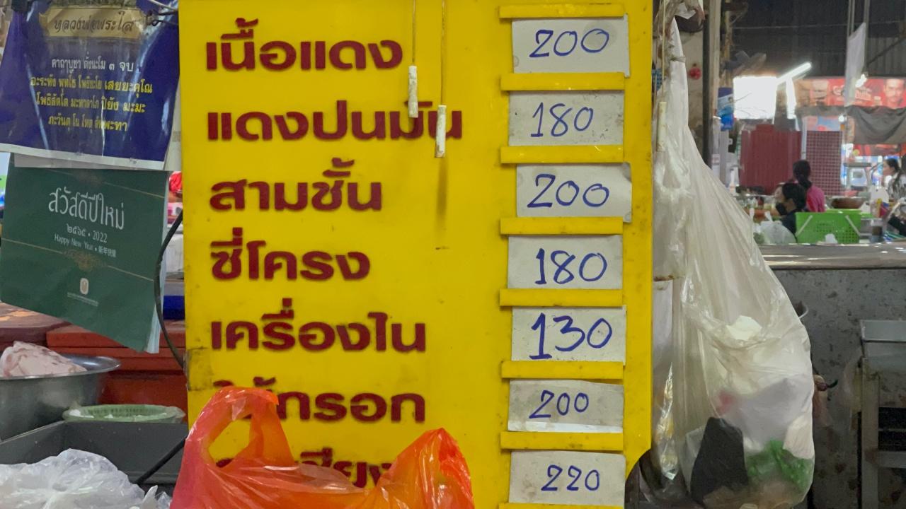 ส่วนที่ตลาดสดโพธิ์ชัย เขตเทศบาลเมืองหนองคาย หมูเนื้อแดง เดิม กก.ละ 165 ตอนนี้ปรับราคาขึ้นเป็น กก.ละ 200 บาท หมูเนื้อแดงปนมัน ราคา กก.ละ 180 บาท หมูสามชั้น กก.ละ 200 บาท ซี่โครง กก.ละ 180 บาท ช เครื่องใน กก.ละ 130 บาท เป็นต้น