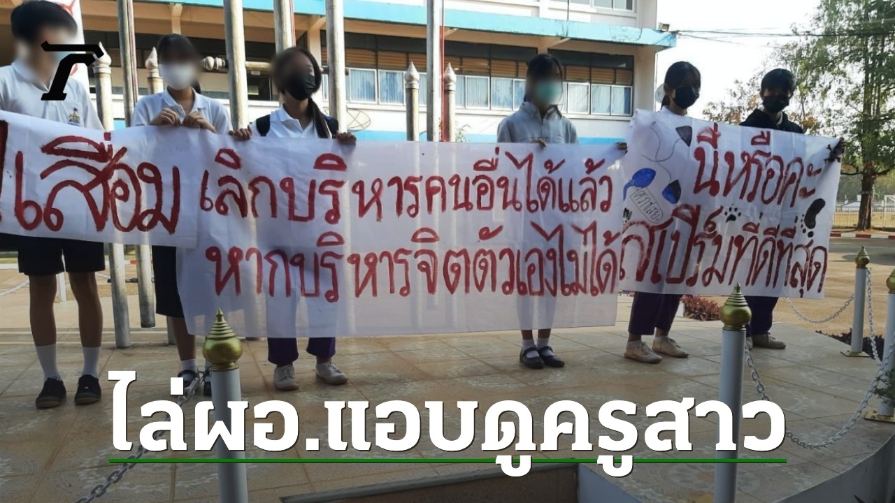 วันที่ 27 ม.ค. ผู้สื่อข่าวรายงานว่า นักเรียนโรงเรียนชื่อดังแห่งหนึ่ง ในพื้นที่ อ.พรเจริญ จ.บึงกาฬ รวมตัวกันตั้งแต่เช้าพร้อมกับคณะครู ร่วมกันประท้วงขับไล่ผู้อำนวยการโรงเรียน หลังจากเมื่อวันที่ 20 ม.ค. ที่ผ่านมา ผอ.ก่อเหตุนุ่งผ้าเช็ดตัวผืนเดียว ไปปีนด้านหลังห้องน้ำบ้านพักของครูผู้หญิงคนหนึ่งหวังแอบดูครูสาวอาบน้ำ แต่หลังจากถูกเปิดโปงเรื่องกลับเงียบ เด็กนักเรียนจึงรวมตัวกันพร้อมทำป้ายประท้วง เพื่อทวงความยุติธรรมให้ครูสาว โดยมีตำรวจ สภ.พรเจริญ และฝ่ายปกครอง เข้ามาดูแลควบคุมไม่ให้เหตุการณ์บานปลาย
