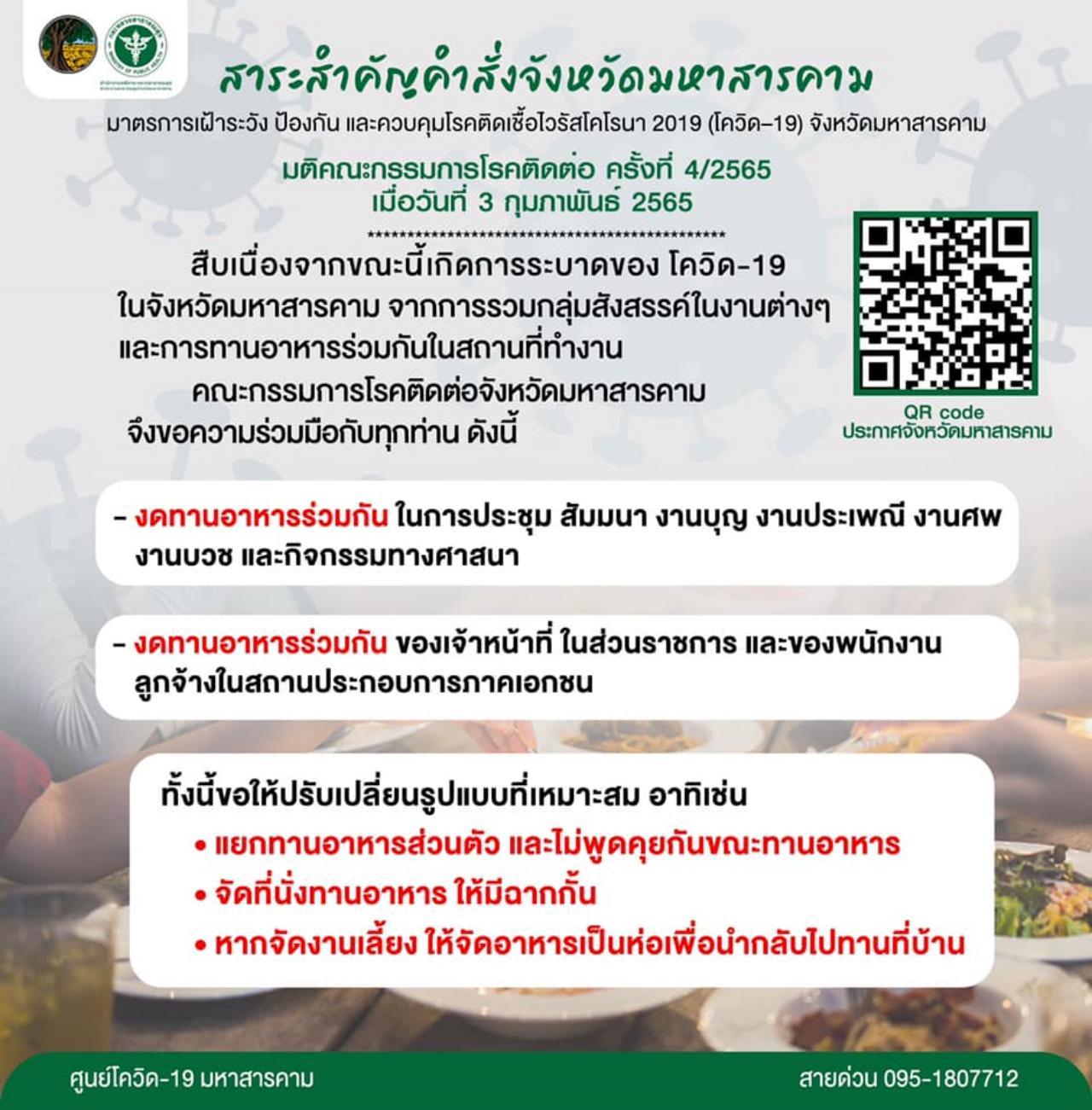 โดยล่าสุดทางจังหวัดมหาสารคามมีคำลั่งจากมติคณะกรรมการโรคติดต่อ ครั้งที่ 4/2565