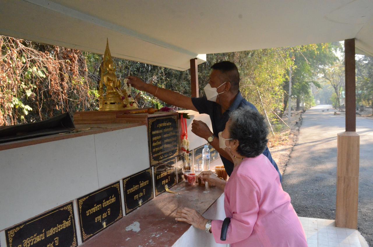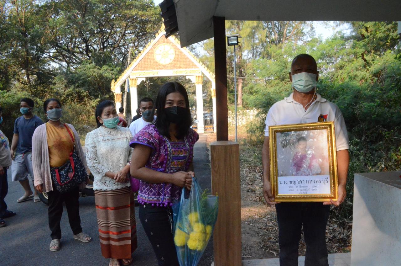 เมื่อวันที่ 8 ก.พ.65 ที่บริเวณแท่นพระบรรจุเถ้ากระดูกใส่ในเชิงตะกอนป้ายชื่อผู้วายชนม์ หลังวัดป่าศรัทธารวม ต.หัวทะเล อ.เมือง จ.นครราชสีมา ได้มีบรรดาญาติพี่น้องผู้เสียชีวิตหรือผู้วายชนม์ให้เหตุการณ์เมื่อ 2 ปีที่ผ่านมา ในโอกาสครบรอบ 2 ปี เหตุ “จ่าคลั่ง” กราดยิงพี่น้องประชานคนบริสุทธิ์ภายในวัดป่าศรัทธารวมแห่งนี้ 9 ศพ จึงได้เดินทางมาประกอบพิธีบังสุกุลอุทิศส่วนกุศลให้กับผู้เสียชีวิตในเหตุการณ์กราดยิง เมื่อวันที่ 8-9 ก.พ. 2563 โดยญาติผู้วายชนม์ได้ร่วมกันวางดอกไม้พวงมาลัยดอกมะลิสด ในจำนวนนี้มี คุณยายทองศักดิ์ ศรีเรือน อายุ 82 ปี มารดาของนางอริศรา โชติกลาง อายุขณะนั้น 52 ปี เภสัชกร 1 ใน 9 ราย ที่ถูกยิงในที่เกิดเหตุภายในวัด เดินทางมาพร้อมสามี และบุตรชาย พี่สาว ญาติๆ พร้อมกับเดินไปลูบแผ่นป้ายชื่อบุตรสาว กล่าวว่า แม่มาหาแล้วนะลูก พร้อมวางพวงมาลัยดอกมะลิสด หน้าแผ่นป้ายทั้ง 9 แผ่นป้าย
