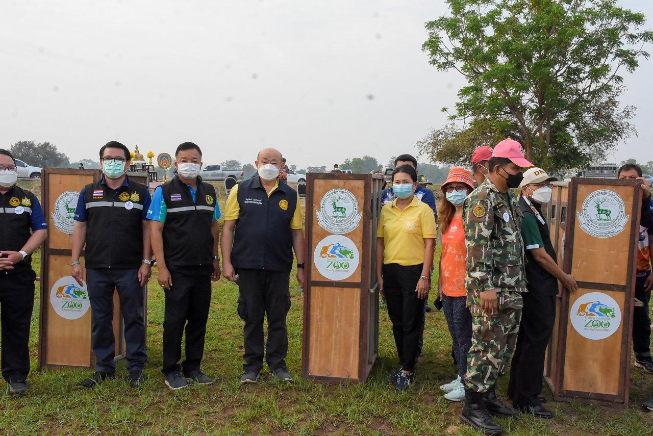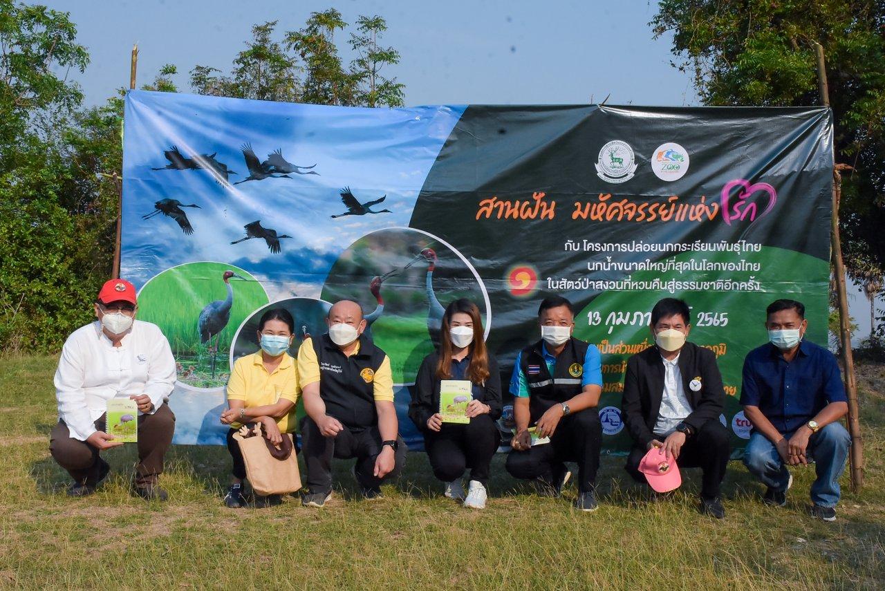 เมื่อวันที่ 13 ก.พ.65 ที่เขตห้ามล่าสัตว์ป่าอ่างเก็บน้ำห้วยจระเข้มาก ต.บ้านบัว อ.เมือง จ.บุรีรัมย์ นายไชยวัฒน์ จุนถิระพงศ์ รองผู้ว่าราชการจังหวัดบุรีรัมย์ พร้อมด้วย นายอรรถพร ศรีเหรัญ ผู้อำนวยการองค์การสวนสัตว์แห่งประเทศไทย ในพระบรมราชูปถัมภ์ นายธนชน เคนสิงห์ ผู้อำนวยการสวนสัตว์นครราชสีมา หัวหน้าส่วนราชการ ผู้นำชุมชน และส่วนราชการในสังกัดกระทรวงทรัพยากรธรรมชาติและสิ่งแวดล้อม ร่วมกันปล่อยนกกระเรียนพันธุ์ไทยจำนวน 11 ตัว ที่สวนสัตว์นครราชสีมา ได้ทำการเพาะเลี้ยงฝึกและปล่อยคืนสู่ธรรมชาติ เพื่อให้สามารถคืนถิ่นกลับสู่ธรรมชาติ ใช้ชีวิตหากินและขยายพันธุ์ อยู่ในระบบนิเวศได้อีกครั้ง ซึ่งปัจจุบันในพื้นที่ จ.บุรีรัมย์ มีนกกระเรียนพันธุ์ไทยอาศัยอยู่ตามธรรมชาติ และสามารถขยายพันธุ์ได้เองมากถึง 133 ตัว