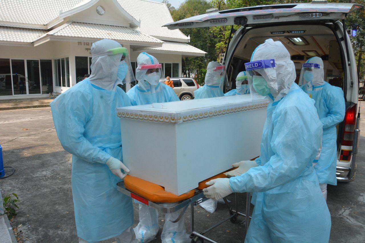 สถานการณ์โควิด-19 ที่ อ.ชุมแพ กลับมารุนแรงอีกครั้ง วันเดียวเสียชีวิต 2 ศพ ทีมกู้ภัยต้องมารับศพไปเผาที่เมรุวัดบุญบาลประดิษฐ์ โดยเป็นหญิงชราวัย 71 ปี อีกรายชายอายุ 68 ปี เป็นกลุ่มมีโรคประจำตัว