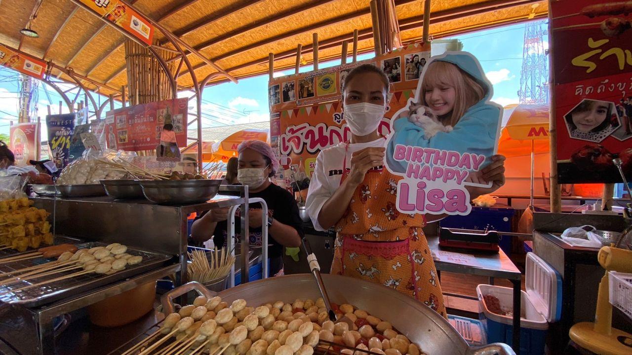 แม่ค้าลูกชิ้นยืนกิน เตรียมร่วมแฮปปี้เบิร์ธเดย์ให้กับลิซ่าพรุ่งนี้ แจกลูกชิ้นให้กินฟรี เผยเพราะลิซ่าทำให้เกิดกระแส จนทำให้แม่ค้าลูกชิ้นบุรีรัมย์ ได้ยืนขึ้นอีกครั้งหลังจากวิกฤติโควิด