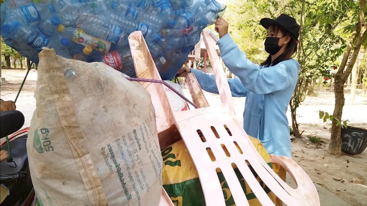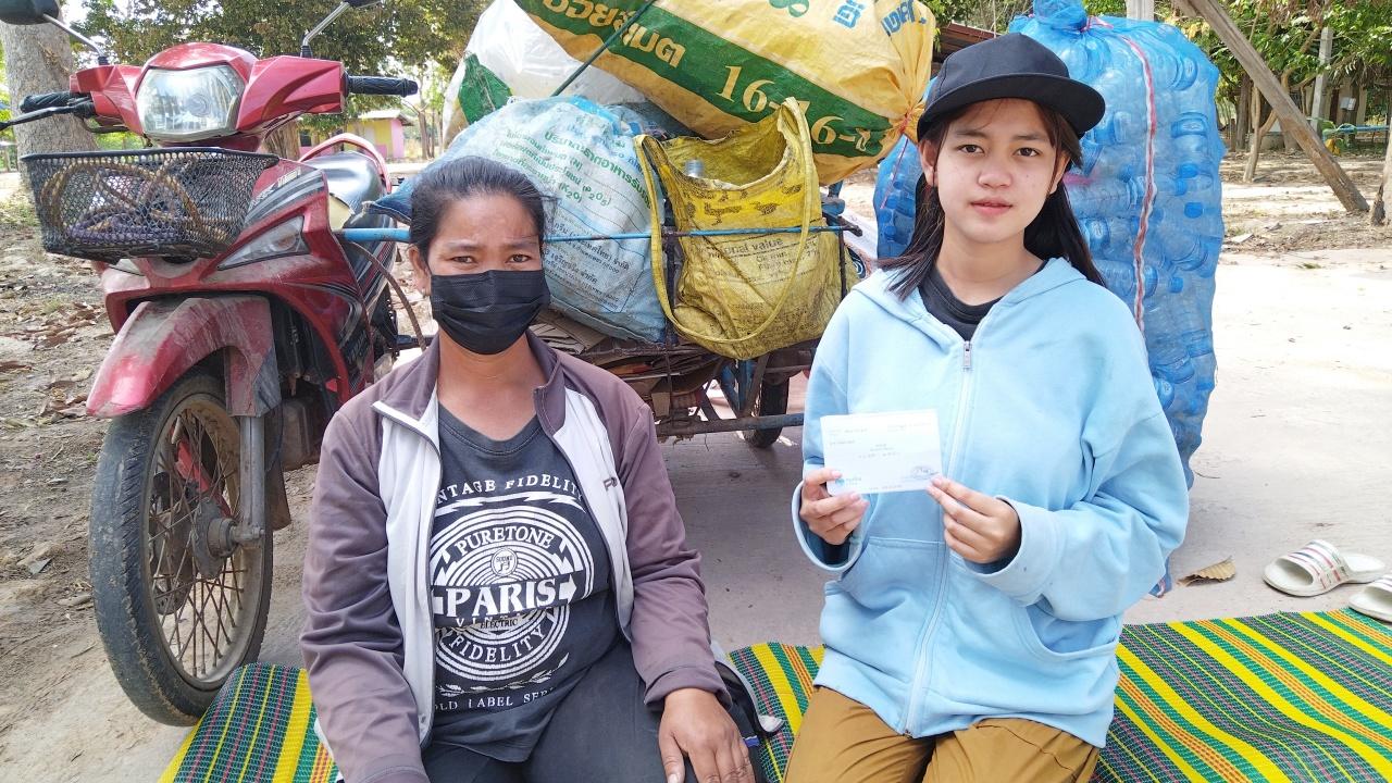 "ช่วงยังไม่เปิดเทอม หนูกับเเม่ก็จะขี่รถซาเล้งออกหาเก็บของเก่าตามถนนในหมู่บ้านต่างๆ บางคนเขาสงสารก็เก็บไว้ให้ ซึ่งหนูก็จะพยายามเก็บของเก่าแล้วนำไปขาย เพื่อนำเงินมาให้แม่จ่ายหนี้สินที่กู้ยืมมาจ่ายค่าเทอมให้หนู" น้องแคท ระบุ
