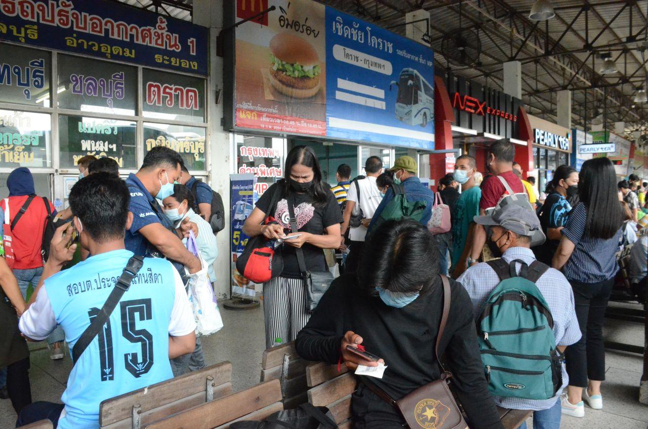 โดยพี่น้องประชาชนต่างหอบหิ้วสิ่งของสัมภาระ ข้าวสาร ขาวเหนียว อาหารแห้ง ทั้งพริก ปลาป่น ปลาร้าบอง ปลาแดก มะม่วงดิบ-สุก เป็นเสบียงไว้รับประทานได้ 1-2 เดือน รวมทั้งของฝาก และมีกระเป๋าเดินทางทั้งหิ้วทั้งลากจูง หลายคนอุ้มลูกจูงหลานติดตามไปด้วย เนื่องจากที่บ้านไม่มีใครดูแล บริเวณหน้าห้องจำหน่ายตั๋วสายนครราชสีมา-กรุงเทพฯ มีประชาชนมารอต่อแถวซื้อตั๋วโดยสารกลับเข้ากรุงเทพฯ อย่างต่อเนื่องตลอดทั้งวัน โดยจากการตรวจสอบรถโดยสารท้องถิ่นที่มาจากต่างจังหวัด ต่างอำเภอพี่น้องประชาชนแน่นแออัดเป็นปลากระป๋องบนรถโดยสารต้องยืน เพื่อเดินทางมาต่อรถที่สถานีขนส่งนครราชสีมา แห่งที่ 2
