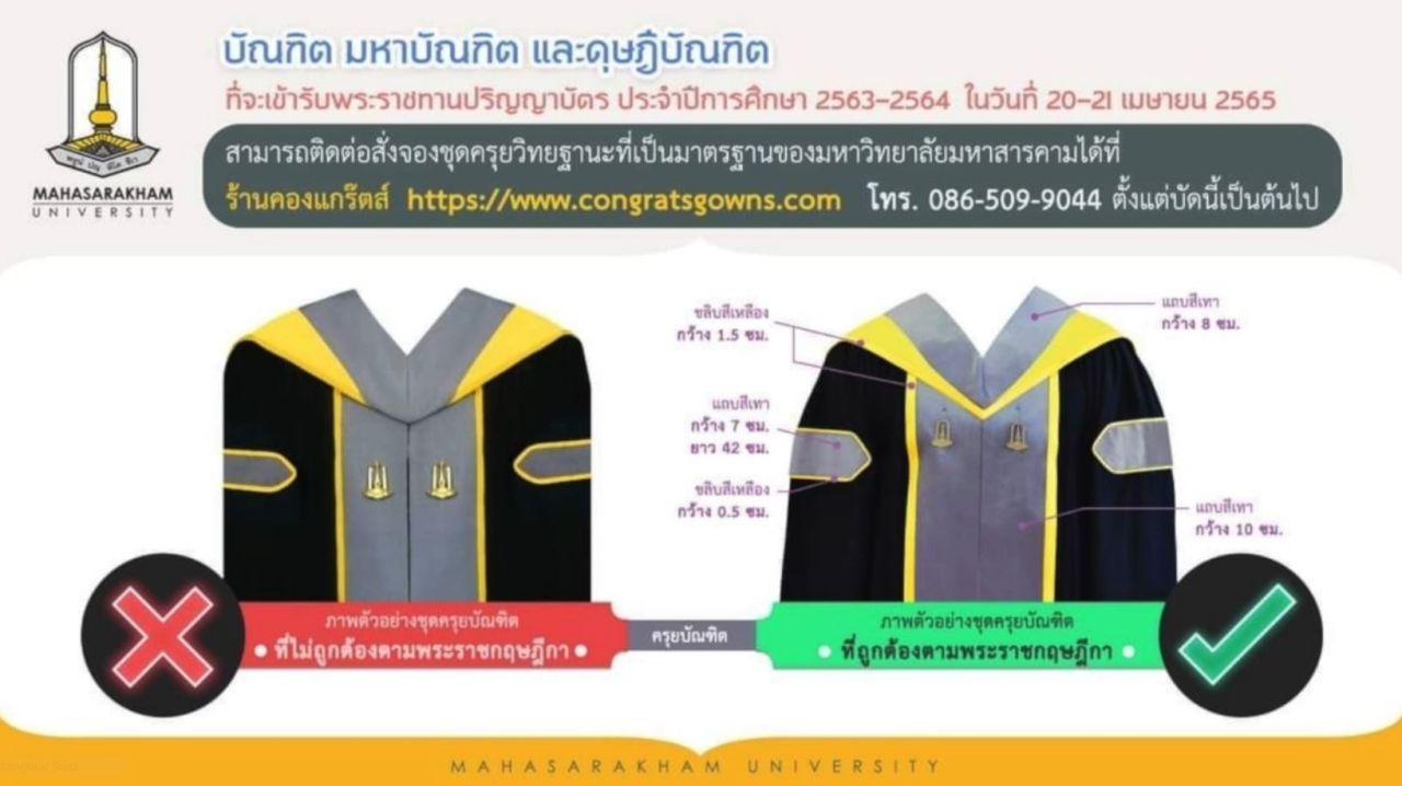 "ล่าสุด มหาวิทยาลัยได้รับคำยืนยันจากผู้ประกอบการที่พร้อมจะดูแลแก้ไขชุดครุยของบัณฑิตให้ถูกต้องตามระเบียบ ขอให้บัณฑิตทุกคนไม่ต้องกังวล มหาวิทยาลัยมหาสารคามจะทำทุกวิถีทางเพื่อที่จะให้บัณฑิตทุกคนได้เข้ารับพระราชทานปริญญาบัตร ในระหว่างวันที่ 20-21 เมษายน นี้ได้แน่นอน" อธิการบดีมหาวิทยาลัยมหาสารคาม.
