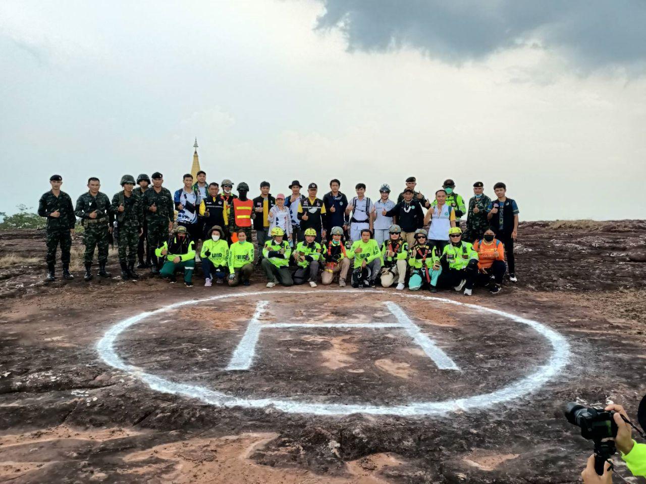 บึงกาฬ ร่วมกับกองกำลังสุรศักดิ์มนตรี และ สสจ.ซ้อมแผนส่งผู้ป่วยฉุกเฉินทางอากาศ สมมติ นทท.ตกบันไดขาหักกระดูกโผล่บนถ้ำนาคา อช.ภูลังกา โดยนำ ฮ.ลงจอดที่สนาม ฮ.ชั่วคราว รับตัวไปส่งโรงพยาบาล