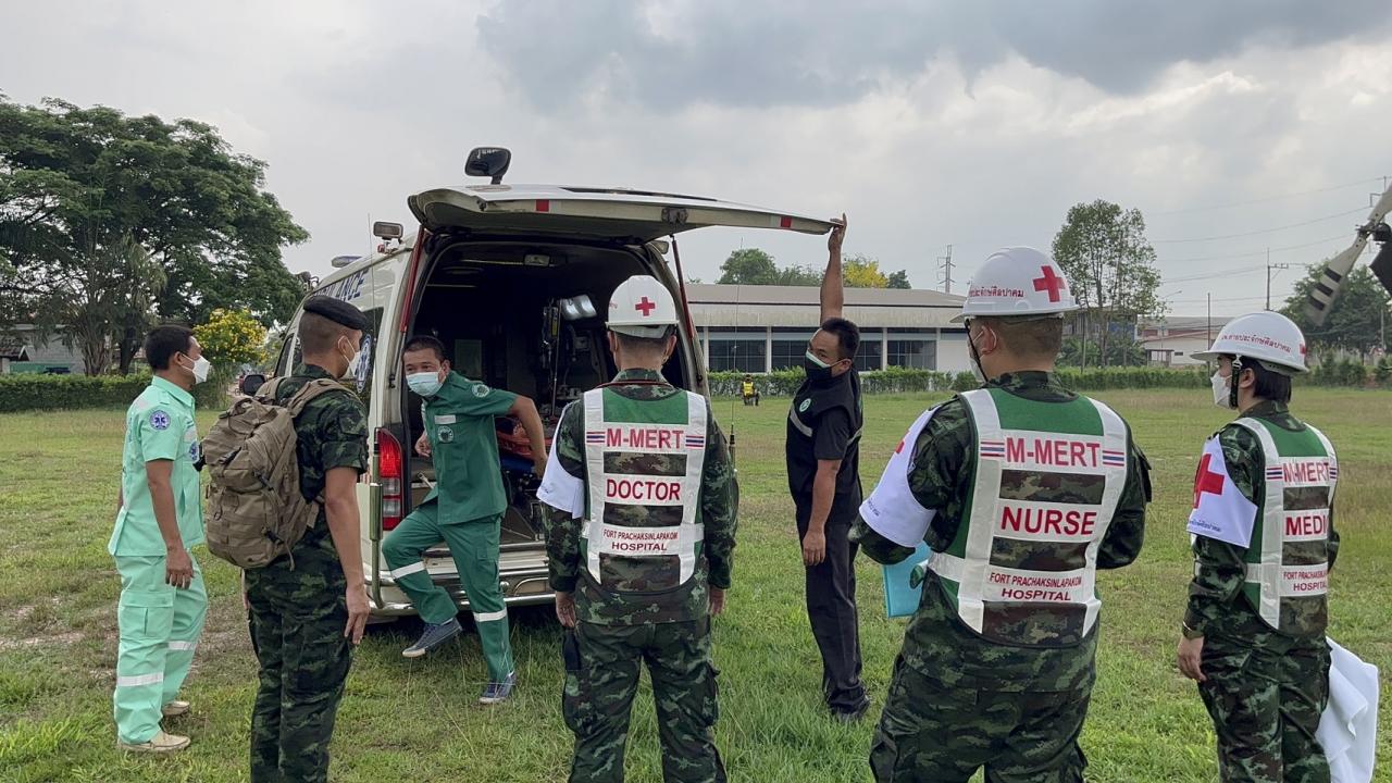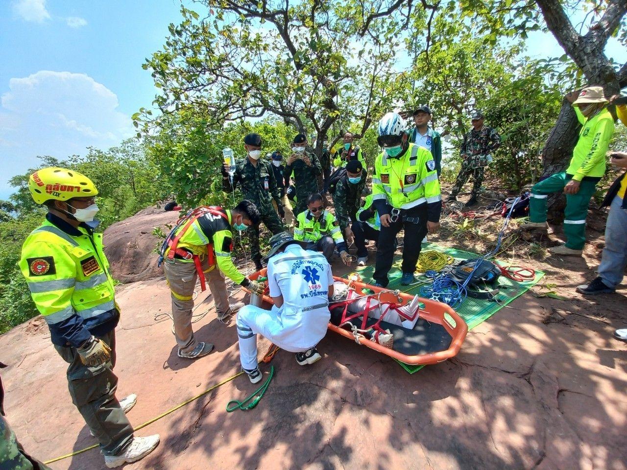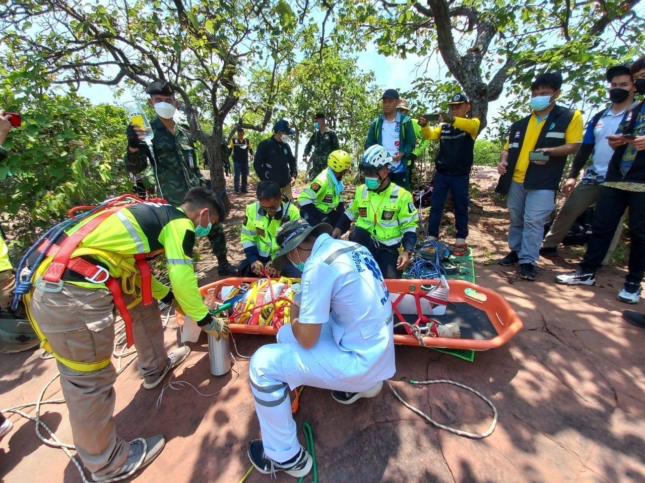 พร้อมกับแจ้งไปยังสายด่วนการแพทย์ฉุกเฉิน 1669 ขออนุมัติลำเลียงผู้ป่วย โดยใช้อากาศยานแบบ ฮท.212 (เบลล์-212) พร้อมนักบิน จาก กกล.สุรศักดิ์มนตรี และ จนท.รพ.ค่ายประจักษ์ศิลปาคม พร้อมทีมลำเลียงผู้ป่วยทางอากาศ (Sky Doctor) มารับผู้ป่วยที่สนาม ฮ.ชั่วคราว ถ้ำนาคา อุทยานแห่งชาติภูลังกา ลำเลียงผู้ป่วยไปส่งต่อให้โรงพยาบาลที่อยู่ใกล้เคียงได้รับการรักษาอย่างรวดเร็ว และเพื่อให้การส่งกลับผู้ป่วยเจ็บในกรณีฉุกเฉินเร่งด่วน มีการปฏิบัติที่ถูกต้อง และให้การช่วยชีวิตผู้ป่วยมีความปลอดภัย ผู้ป่วยรอดชีวิต