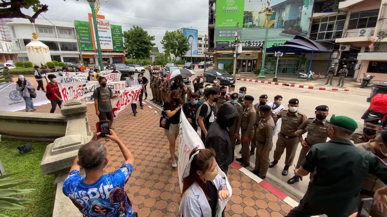 ด้าน พ.ต.อ.ปรีชา เก่งสาริกิจ ผกก.สภ.เมืองขอนแก่น ได้แจ้งสิทธิในการชุมนุม พร้อมทั้งให้ผู้ชุมนุมทั้งหมดได้ปฏิบัติตามอย่างเคร่งครัด เนื่องจากได้รับการร้องเรียนจากประชาชนในการทำกิจกรรมที่ทำให้การจราจรติดขัด ก่อนที่จะเคลื่อนขบวนมาที่อนุสาวรีย์จอมพลสฤษดิ์ ธนะรัชต์ เพื่อจัดกิจกรรมต่อต้านรัฐประหาร ท่ามกลางกำลังเจ้าหน้าที่ทั้งในและนอกเครื่องแบบ คอยสังเกตการณ์ตลอดทั้งช่วงของการจัดกิจกรรมในทุกจุดอย่างเข้มงวด