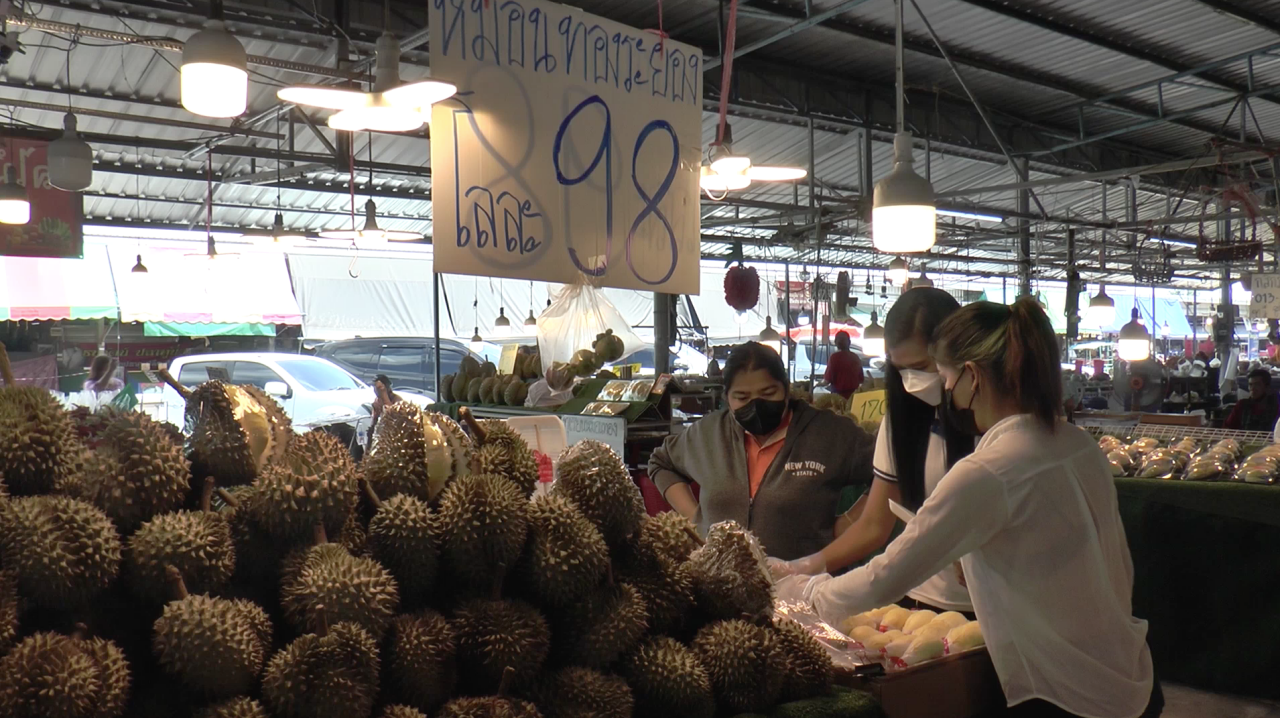 วันที่ 26 พฤษภาคม 2565 ที่โซนผลไม้ ตลาดเทิดไท (ตาลคู่) ต.บ้านใหม่ อ.เมือง จ.นครราชสีมา ได้มีประชาชนจำนวนมากแห่มาเลือกซื้อทุเรียนหมอนทอง ราคาถูก กิโลกรัมละ 98 บาท ที่ทางร้านน้องขนุน นำมาขายสวนกระแสน้ำมันแพง