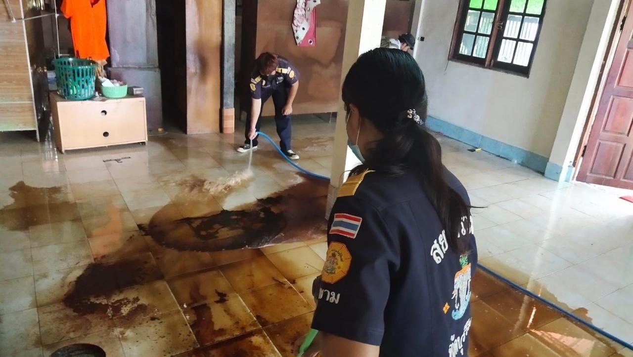เมื่อไปถึงบ้านที่เกิดเหตุพบว่าเป็นบ้านสองชั้น ชั้นล่างพบศพผู้เสียชีวิตผูกคออยู่ชั้นล่าง คาดว่าเสียชีวิตมาประมาณ 5-7 วัน เพราะสภาพร่างกายเริ่มเน่าเปื่อย มีน้ำเหลืองเยิ้มไหลลงมานองเต็มพื้นชั้นล่าง