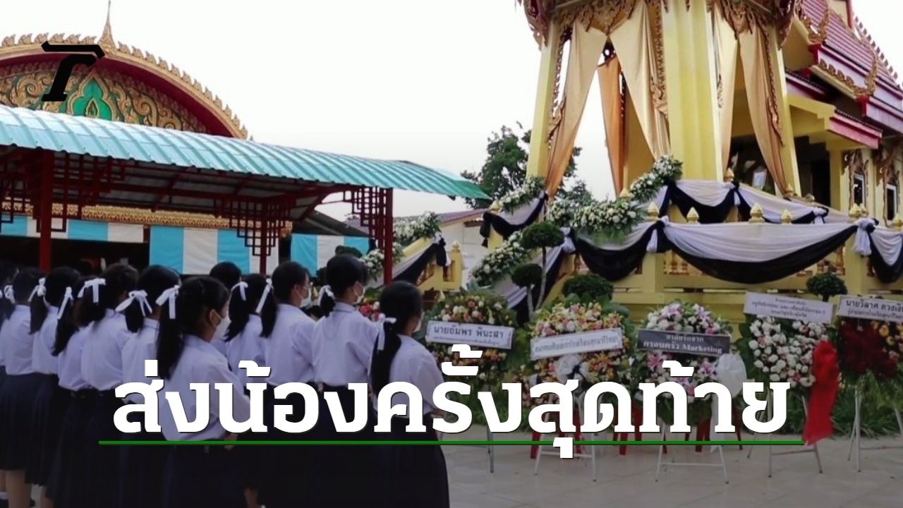 ครอบครัวจัดพิธีฌาปนกิจศพน้องส้มโอ อายุ 14 ปี นักเรียนชั้น ม.2 โรงเรียนสุรนารีวิทยา ที่ดิ่งตึกเรียนลาโลกเมื่อ 31 พ.ค. ที่ผ่านมา ท่ามกลางความอาลัยของพ่อแม่ โดยมีครู รุ่นพี่ และเพื่อน ร่วมพิธี