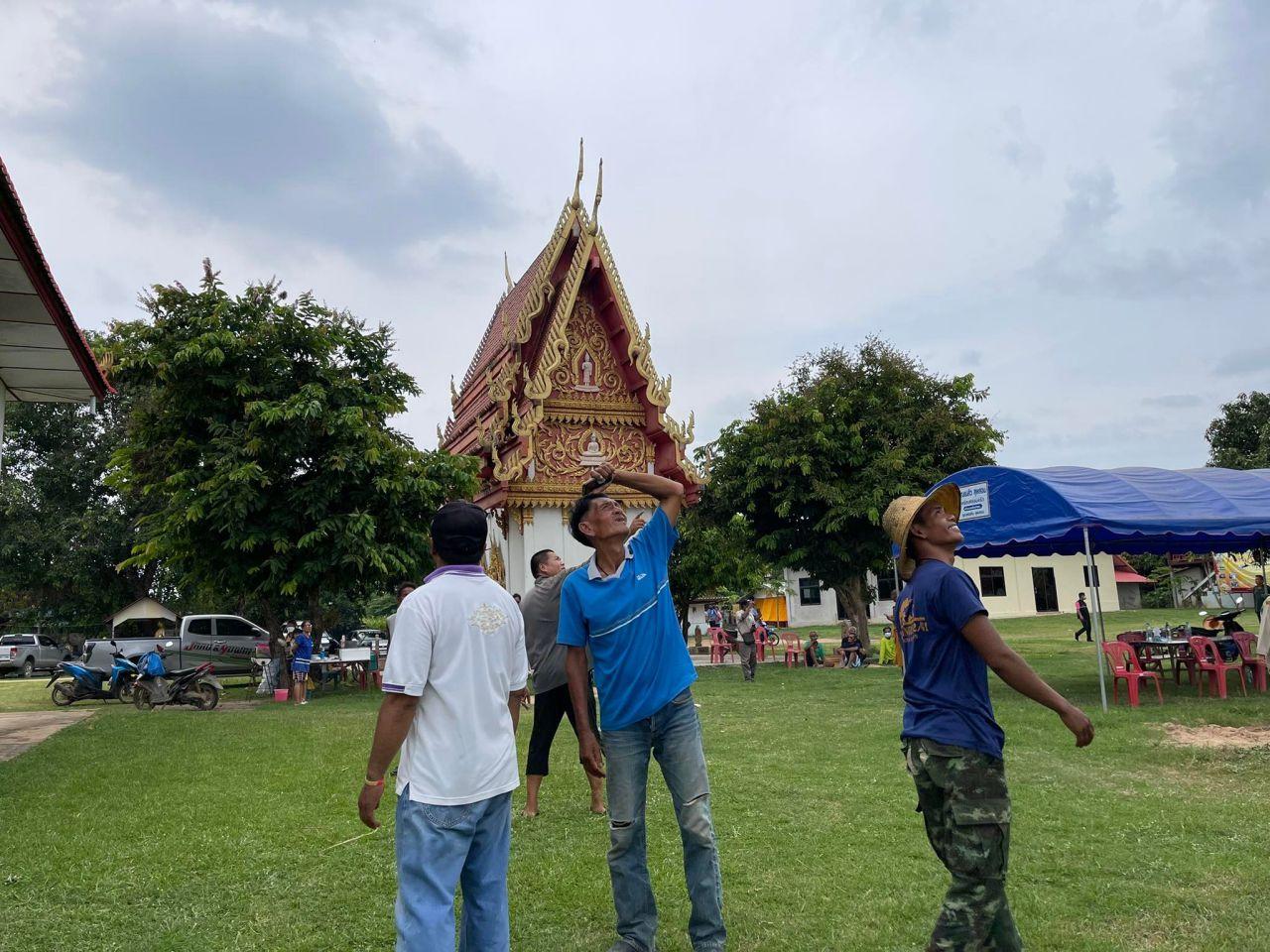 ขณะเดียวกันก็ได้มีชาวบ้านบ้านคุยตับเต่า ต่างพาบุตรหลานของตนออกไปรวมกันที่บริเวณวัด เพื่อคอยสังเกตดูบั้งไฟที่จุดจากฐานจุดในงานประเพณีบุญบั้งไฟประจำปีของอำเภอพนมไพร พร้อมกับคอยสังเกตทิศทางของบั้งไฟที่จะลอยตกลงสู่พื้นดินป้องกันอันตรายที่อาจจะเกิดกับตนเองและบ้านเรือน เนื่องจากบริเวณหมู่บ้านดังกล่าวเป็นจุดตกของบั้งไฟ ซึ่งฐานจุดห่างจากหมู่บ้านแห่งนี้เพียง 3 กิโลเมตรเท่านั้น ปกติทุกปีก็มักจะมีบั้งไฟไปตกลงภายในหมู่บ้านเป็นประจำ และในปีนี้ทางอำเภอพนมไพร จังหวัดร้อยเอ็ด ก็ได้กำหนดให้มีการจุดบั้งไฟในวันนี้ (15 มิ.ย.2565) โดยมีการจุดบั้งไฟตั้งแต่เวลา 08.00 น. และมีการจุดบั้งไฟตลอดทั้งวันจนกระทั่งค่ำ เพราะมีบั้งไฟที่เข้าร่วมจุดในปีนี้ทั้งบั้งไฟหมื่นและบั้งไฟแสน จำนวนกว่า 900 บั้ง