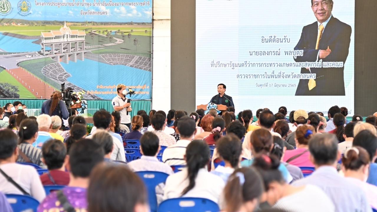 เมื่อวันที่ 18 มิ.ย.65 นายอลงกรณ์ พลบุตร ที่ปรึกษารมว.เกษตรและสหกรณ์ ติดตามการดำเนินโครงการประตูระบายน้ำลำน้ำพุง-น้ำก่ำ อันเนื่องมาจากพระราชดำริ จ.สกลนคร ซึ่งพระบาทสมเด็จพระบรมชนกาธิเบศร มหาภูมิพลอดุลยเดชมหาราช บรมนาถบพิตร รัชกาลที่ 9 ทรงพระราชดำริเมื่อ 20 พ.ย.2535 ครั้งเสด็จพระราชดำเนินทอดพระเนตรโครงการอ่างเก็บน้ำห้วยเดียกอันเนื่องมาจากพระราชดำริ ต.ห้วยยาง อ.เมือง จ.สกลนคร ความว่า “…เนื่องจากเดิมน้ำในลำห้วยน้ำพุง ไหลลงลำน้ำก่ำด้านติดกับหนองหารทางหนึ่ง และไหลแยกออกไปทางด้านทิศตะวันตก ลงหนองหารอีกทางหนึ่ง แต่ปัจจุบันห้วยน้ำพุงด้านที่ลงลำน้ำก่ำมีสภาพตื้นเขิน เป็นเหตุให้ในช่วงฤดูฝน น้ำจากห้วยน้ำพุงไหลออกทางด้านลำห้วยสาขาต่าง ๆ ทางฝั่งขวา บริเวณด้านเขตติดต่อระหว่าง อ.เมืองสกลนคร กับ อ.โคกศรีสุพรรณ ไปลงลำน้ำก่ำ ซึ่งมีระดับสูงเช่นเดียวกัน จึงเกิดสภาพน้ำเอ่อขึ้นท่วมพื้นที่เพาะปลูก จนเกิดความเสียหายแก่ผลผลิตของราษฎร จึงควรพิจารณาดำเนินการโครงการพัฒนาแหล่งน้ำในพื้นที่ทางฝั่งตะวันออกของห้วยน้ำพุง อ.โคกศรีสุพรรณ จ.สกลนคร…” และในปี พ.ศ. 2560 จ.สกลนคร ประสบปัญหาอุทกภัย น้ำท่วมทั้ง 18 อำเภอ เสียหายเป็นบริเวณกว้าง จึงจำเป็นต้องลดปริมาณน้ำหลาก กรมชลประทานจึงได้ดำเนินการศึกษาโครงการแล้วเสร็จในเดือนกันยายน 2556