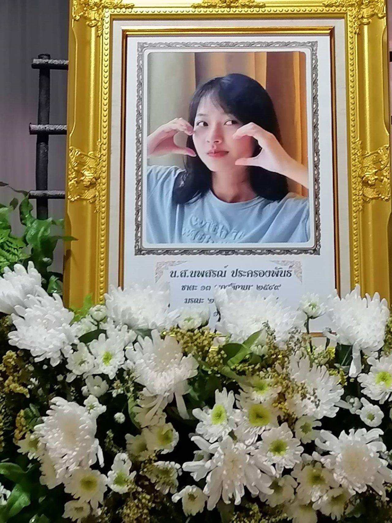 ส่วน นางสาวพรสุดา ศรีสุข เพื่อนของน้องพลอยที่โรงเรียน กล่าวว่า เดินทางมาร่วมงาน ภายหลังทราบข่าวเรื่องการจากไปกะทันหันของเพื่อน ก็ตกใจไม่คิดว่าจะจากไปเร็วขนาดนี้ เรื่องของความดังของเพื่อนก็เป็นการแสดงออกในมุมน่ารัก ไม่มีอะไรเสียหาย ฝากถึงน้องพลอยว่าถ้าเป็นไปได้คงไม่อยากให้จากไป แต่เมื่อเกิดขึ้นแล้วก็ต้องทำใจยอมรับ คนที่อยู่ต้องอยู่ได้ ทั้งนี้มีความตั้งใจว่าอยากถ่ายรูปร่วมกับเพื่อนตอนจบ ม.6.