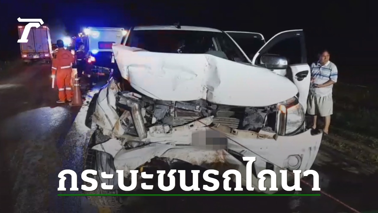 หนุ่มใหญ่ควบกระบะ เสยท้ายรถไถนาพลิกคว่ำ สลด ลุง 62 คนขับหัวฟาดพื้นดับ หนุ่มใหญ่เผยกำลังขับแซงสิบล้อ แต่มีรถสวนทางมา จึงหักหลบไปชนท้ายรถไถนา เหตุถนนมืดมาก-ไม่มีไฟส่องสว่าง ด้านตำรวจให้หนุ่มใหญ่เป่าแอลกอฮอล์-แต่ไม่พบ