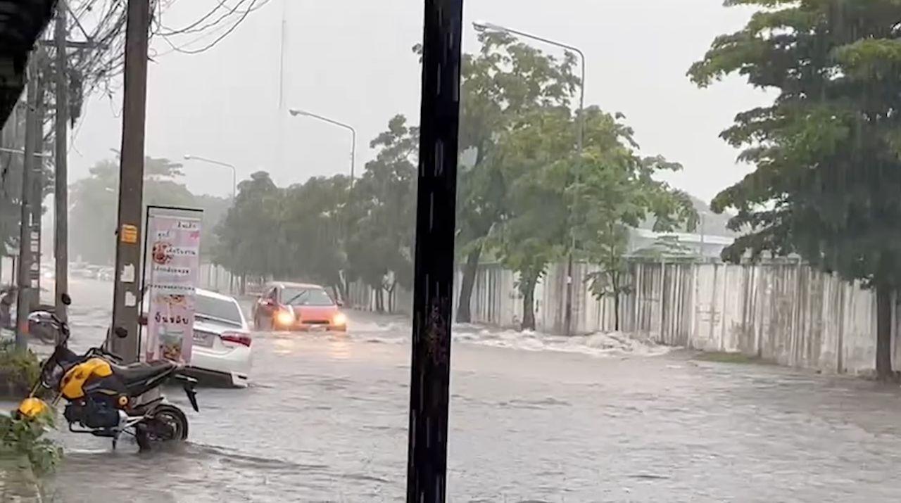 ขอนแก่นฝนตกหนักต่อเนื่องหลายชั่วโมง ทำให้น้ำท่วมถนนมิตรภาพ การสัญจรเดินทางเป็นไปด้วยความยากลำบาก รถเคลื่อนตัวได้ช้า ขณะที่จุดท่วมซ้ำซากไม่รอดกระแสน้ำไหวเชี่ยวพัด จยย.ที่จอดริมถนนล้มจมน้ำ