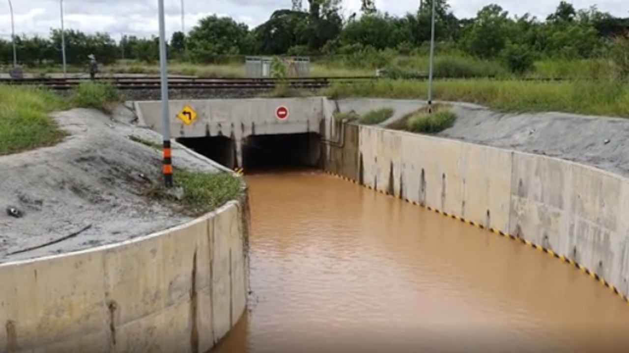 ประกอบกับการก่อสร้างขยายเส้นทางรถไฟไปขวางช่องทางการระบายน้ำเดิม ทำให้น้ำไม่สามารถไหลได้สะดวก เมื่อเกิดฝนตกหนักมวลน้ำจึงได้ล้นทะลักเข้ามาในทางลอดจนเกิดการท่วมขัง ซึ่งถ้าไม่มีปริมาณฝนตกลงมาเพิ่มระดับน้ำก็น่าจะลดลงจนชาวบ้านสามารถใช้เส้นทางสัญจรได้ตามปกติ