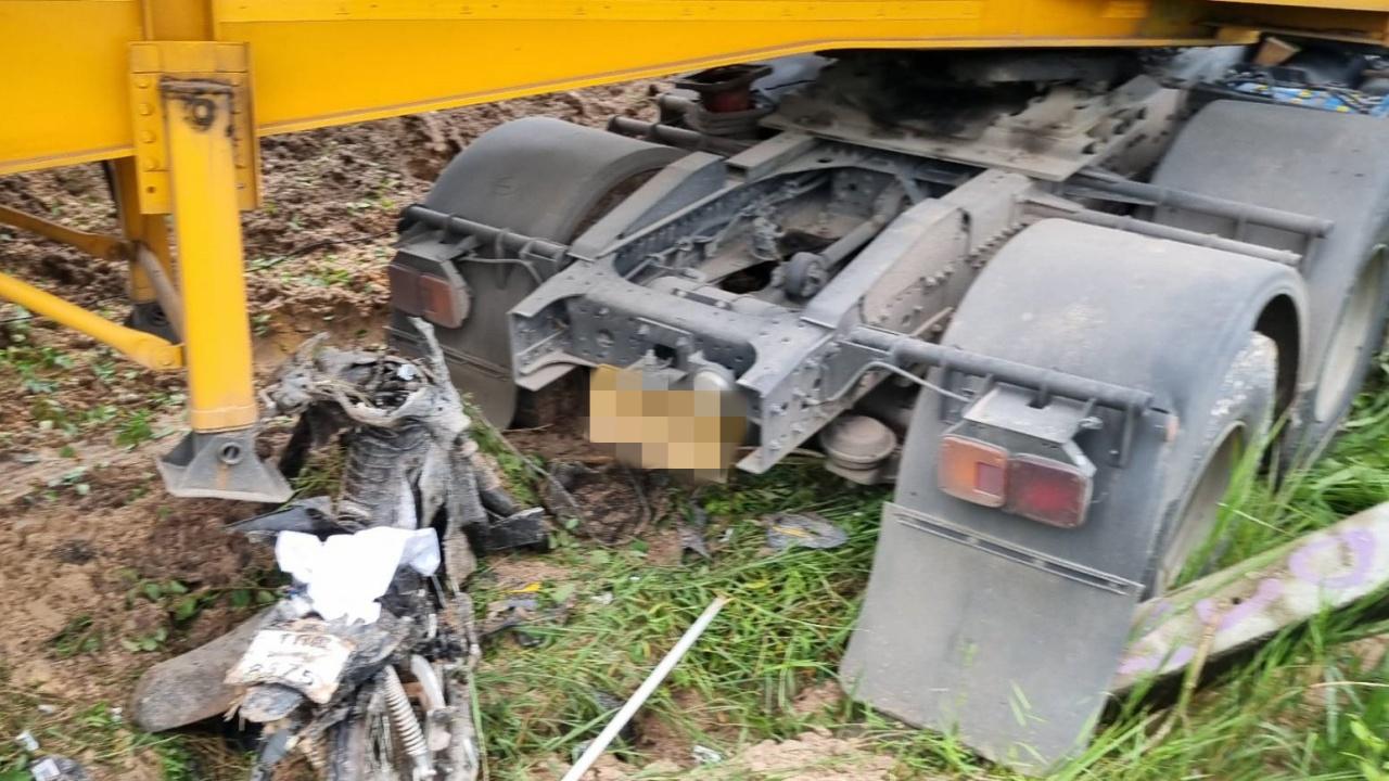 สลด 2 หนุ่มนักศึกษา ขี่ จยย.ถูกรถพ่วง 22 ล้อ พุ่งชนท้าย-ลากลงข้างทาง ดับคาที่ 1 เจ็บสาหัส 1 ส่วนคนขับรถพ่วงบาดเจ็บเช่นกัน ด้านตำรวจคาดรถพ่วงอาจหลับใน เหตุขับมาจากทางไกลภาคเหนือ