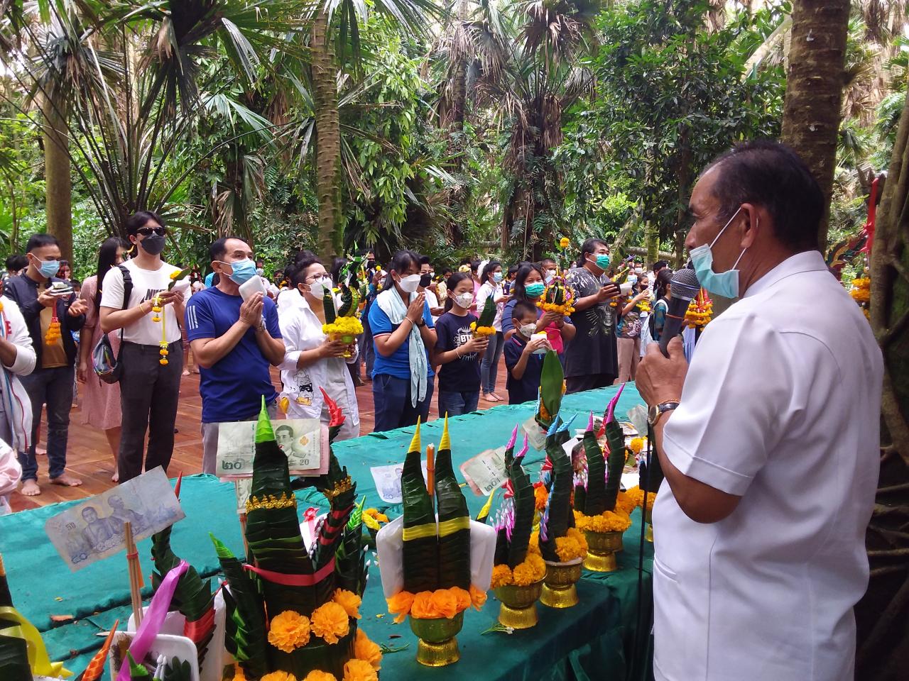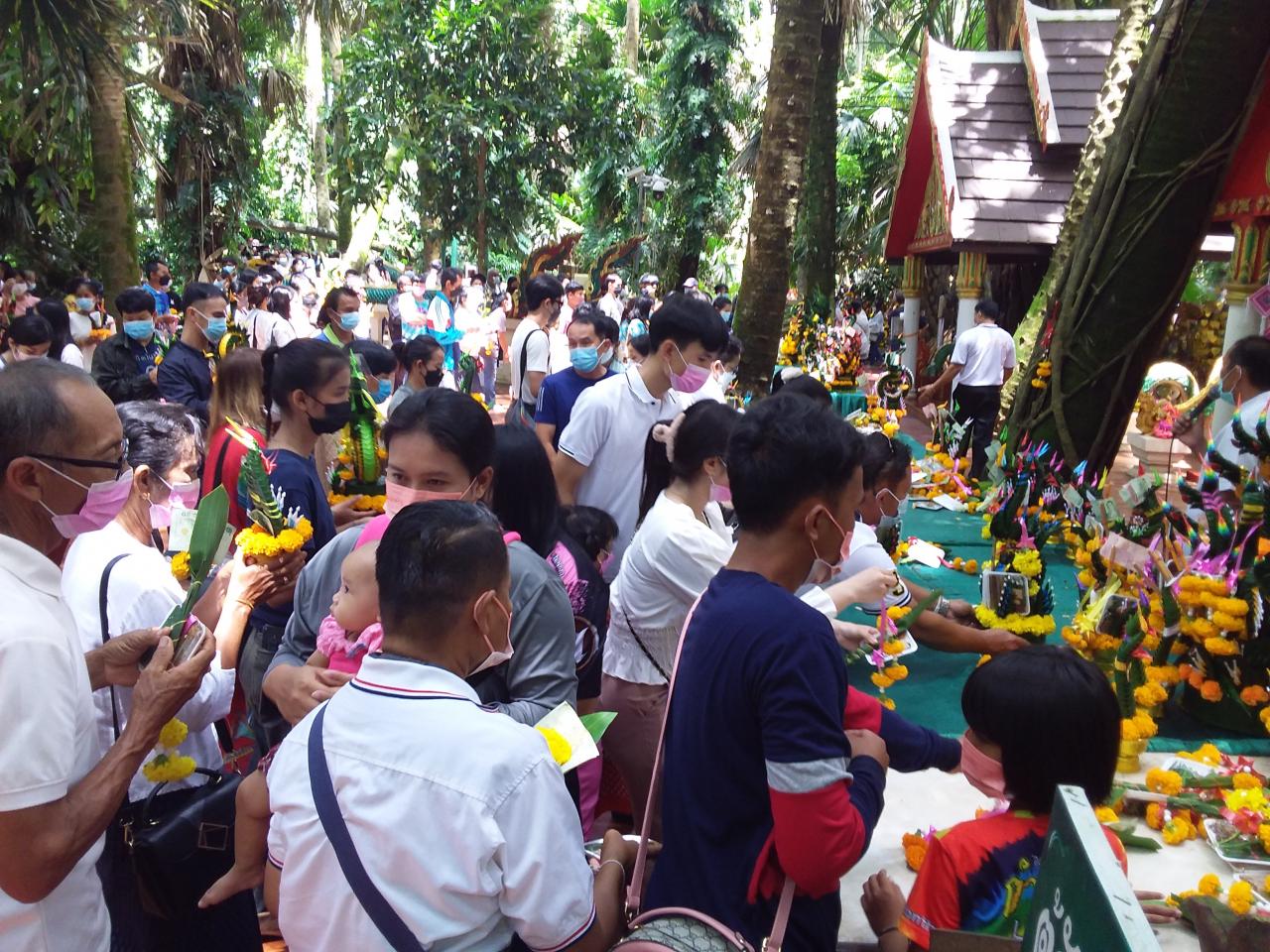 โดยวันนี้มีประชาชน นักท่องเที่ยวต่างเดินทางเพื่อมากราบไหว้ขอพร ขอโชคลาภหน้าศาลพ่อแม่ย่าจนแน่น ก่อนจะต่อไปยังต้นมะเดื่อยักษ์ ถือว่าเป็นขุมทรัพย์พ่อปู่แม่ย่าตามความเชื่อ