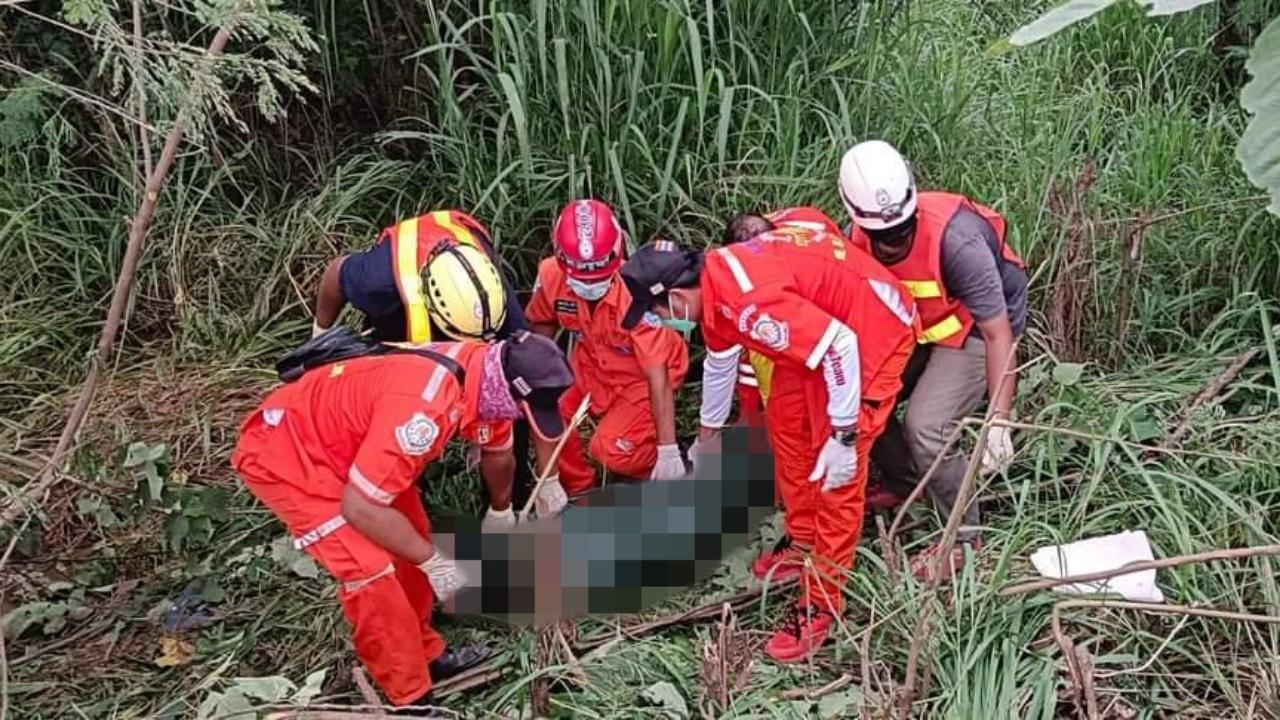 รถโม่ปูนพลิกคว่ำหงายท้อง ล้อทับหนุ่มใหญ่ จมแอ่งน้ำดับ ส่วนคนขับบาดเจ็บสาหัส สอบสวนเบื้องต้นพบถูกรกกระบะตัดหน้า จึงหักหลบเสียหลักตกข้างทางเป็นเหตุสลด