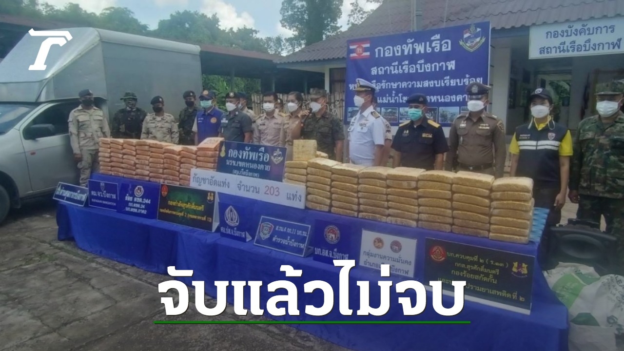 เวลา 09.00 น. วันที่ 19 ก.ค. 65 ที่หน่วยเรือรักษาความสงบเรียบร้อยตามลำแม่น้ำโขง สถานีเรือ นรข.บึงกาฬ น.อ.ราฆพ เทวะประทีบ ผบ.นรข.เขตหนองคาย มอบหมายให้ น.ท.สุรไกร รัตนกุสุมภ์ หน.ยก.นรข.เขตหนองคาย ร่วมกับ พ.ต.ต.หญิง ชุลีกร ลิมวิเศษศักดิ์ สว.ตม.บึงกาฬ พ.ต.ต.วิษณุ จินาวงษ์ สว.ตำรวจน้ำ นายอธิภัทร อยู่คุ้มญาติ หน.ฝ่ายปราบปรามฯ ด่านศุลกากรบึงกาฬ น.ส.กมลนิตยกานต์ หาญคำหล้า ผู้ช่วยป้องกันจังหวัด นายภูมินทร์ ศรีโฉม ปลัดฝ่ายป้องกันอำเภอเมืองบึงกาฬ ร่วมกันแถลงจับกุมผู้ต้องหาชาย 3 คน ของกลางกัญชาแห้งอัดแท่ง 203 แท่ง น้ำหนัก 203 กิโลกรัม ห่อหุ้มด้วยกระดาษฟอยล์สีทองและสีเหลือง รถยนต์บรรทุกขนาดเล็กด้านหลังทำเป็นตู้ทึบคล้ายรถส่งสินค้า ยี่ห้ออีซูซุ รุ่นดีแม็กซ์ สีบรอนซ์เงิน ทะเบียน 2 ฒช 9288 กรุงเทพมหานคร และโทรศัพท์มือถือ 3 เครื่อง แจ้งข้อหา “ร่วมกันนำของต้องห้ามต้องกำกัด (พืชกัญชา) เข้ามาในราชอาณาจักรโดยไม่ผ่านพิธีการทางศุลกากร”