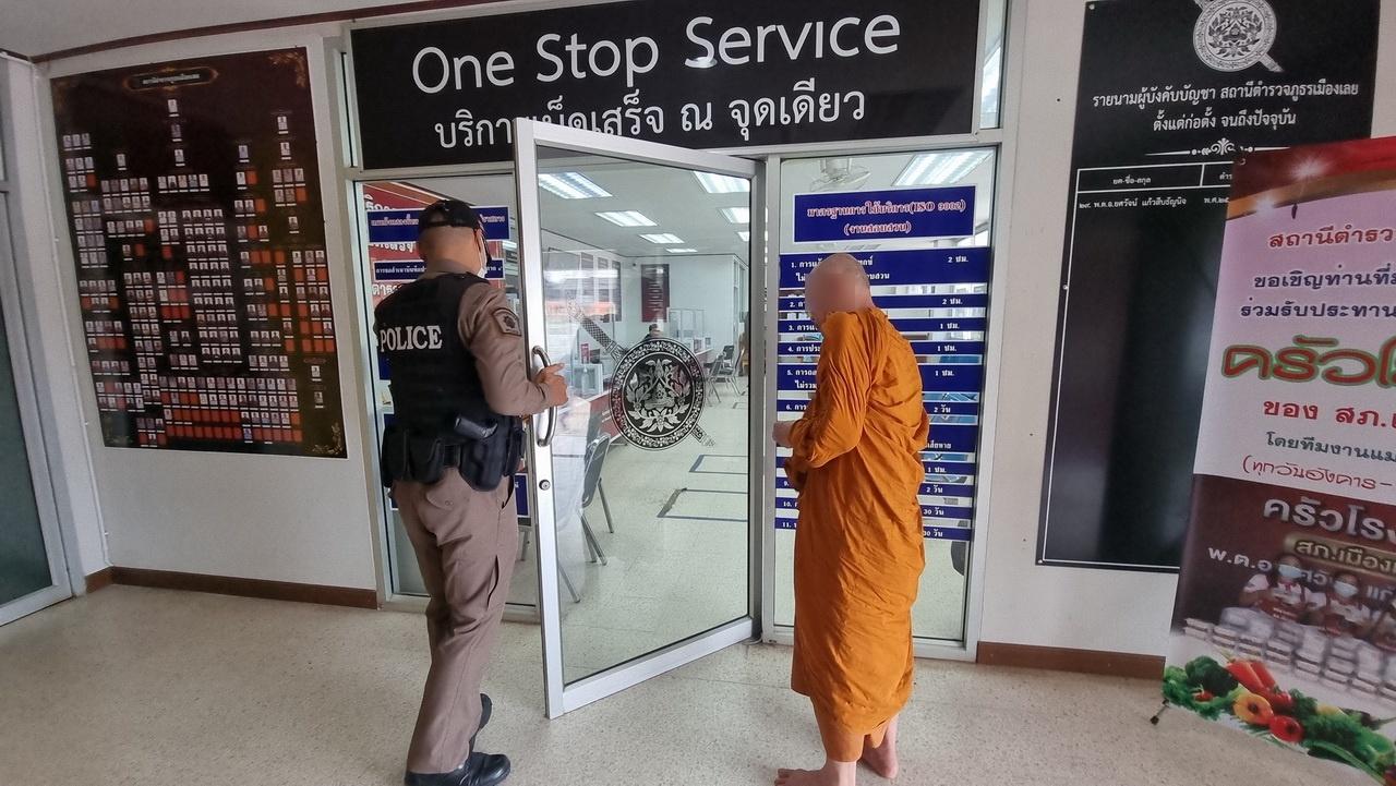 เมื่อเวลา 09.30 น.วันที่ 20 กรกฎาคม 2565 พ.ต.ท.พีรพงษ์ รากสี สวป.สภ.เมืองเลย ได้รับแจ้งจากชาวบ้านตลาดเช้า ต.กุดป่อง อ.เมืองเลย ว่า มีพระลักษณะเมาออกเรี่ยไรเงินร้านค้า สร้างความเดือดร้อน หลังรับแจ้งประสานชุดสายฟ้า เดินทางไปตรวจสอบ พบรถยนต์กระบะ มิตซูบิชิ ไทรทัน สีบรอนซ์เงิน ทะเบียน บธ 2391 หนองบัวลำภู จอดอยู่ที่ตลาดเช้า ที่กระจกและประตูมีตัวหนังสือระบุชื่อ วัดรุ่งอรุณ และภายในรถข้างคนขับ พบพระธนกร นาทองบ่อ อายุ 63 ปี จำพรรษาอยู่ที่วัดรุ่งอรุณ บ้านหนองหญ้าไซ ต.นาดินดำ อ.เมืองเลย นั่งอยู่ในสภาพเมา พูดไม่ค่อยรู้เรื่อง จึงเชิญตัวออกมาจากรถ ยืนเซไปมา พูดลิ้นรัว จับใจความไม่ค่อยได้ ขอดูใบสุทธิก็ไม่มี