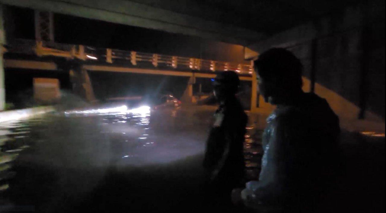 แต่เมื่อขับรถลงมาในจุดดังกล่าว ปรากฏมีน้ำฝนที่ตกแรงไหลจากถนนมารวมกันบนผิวจราจรสูง 50-70 เซนติเมตร จนท่วมสูงราวๆ ครึ่งคัน ทำให้เครื่องยนต์ดับและตัวคนขับไม่กล้าออกจากรถ หน่วยกู้ภัยจึงเข้าไปช่วยเหลือนำตัวมานั่งสงบสติอารมณ์และรอญาติให้มารับ ส่วนรถต้องรอให้ระดับน้ำลดลง จะได้ส่งรถมาลากไปทำการซ่อม ส่วนสาเหตุที่เกิดน้ำขัง คาดว่ามาจากช่องที่ใช้ระบายน้ำจากผิวจราจรลงสู่แม่น้ำมูลน้อย มีขนาดเล็ก และมีสิ่งของไปอุดตัน ทำให้ระบายน้ำออกจากผิวจราจรไม่ทัน และเกิดน้ำท่วมขังสูงดังกล่าว