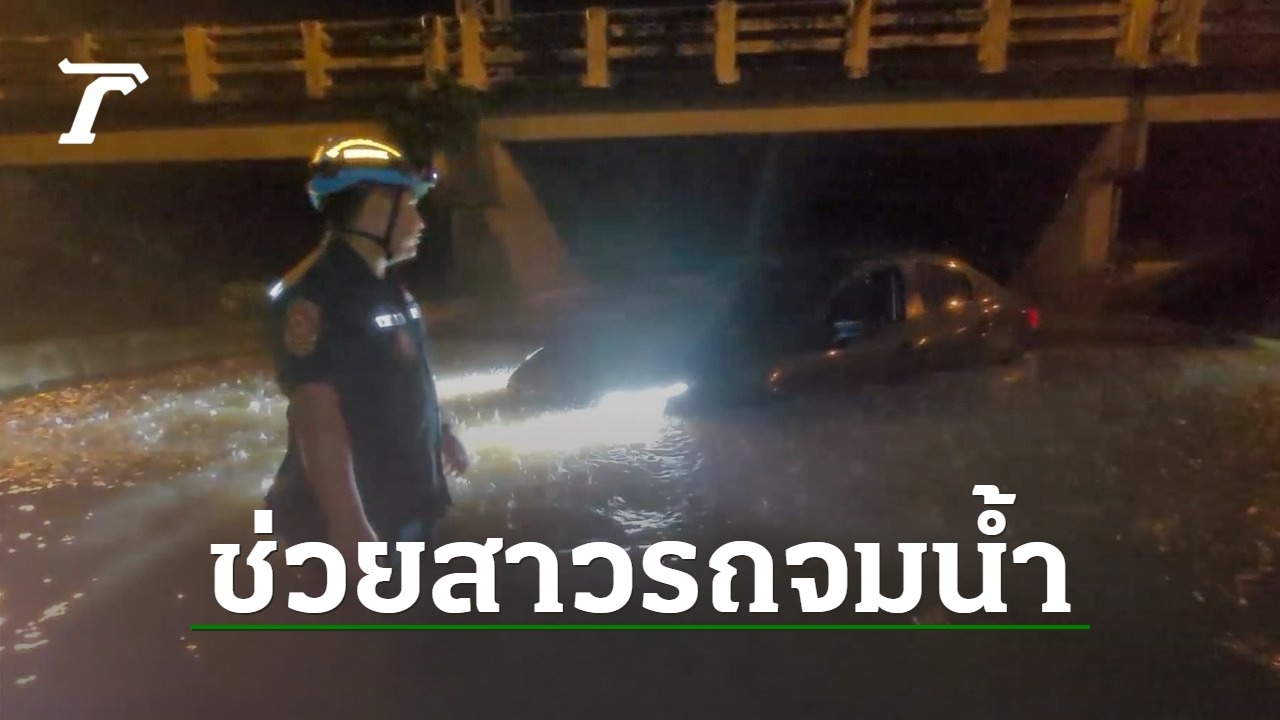อุบลราชธานีฝนตกหนัก สาววัย 23 ขับเก๋งฝ่าฝนแล้วหลงไปกลับรถใต้สะพานข้ามลำน้ำมูลน้อย จะข้ามไปถนนเลี่ยงเมือง เจอน้ำท่วมสูงจนรถจมน้ำครึ่งคันเครื่องยนต์ดับ ร้องกู้ภัยช่วยออกจากรถอย่างปลอดภัย