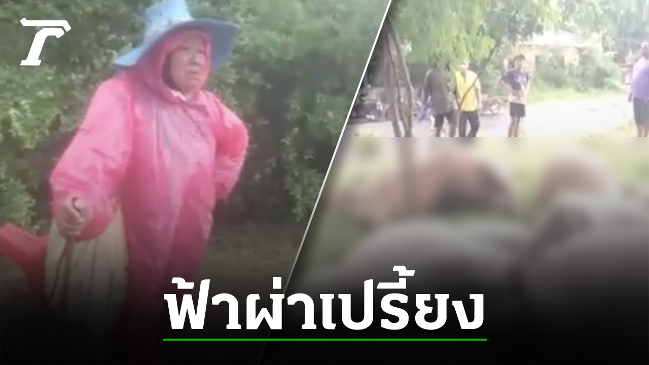 นครราชสีมา-เกิดเหตุสลด ฟ้าผ่าวัวตายพร้อมกัน 7 ตัว ยายเจ้าของร่ำไห้ เล่านาทีเกิดเหตุ ฝนตั้งเค้ามืด เลยต้อนวัวไปหลบอยู่ใต้ต้นไม้ เผยหมดเนื้อหมดตัว สมบัติชิ้นสุดท้าย ตายเบิดแล้ว