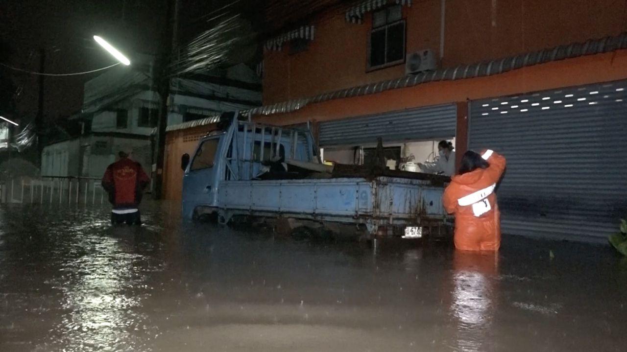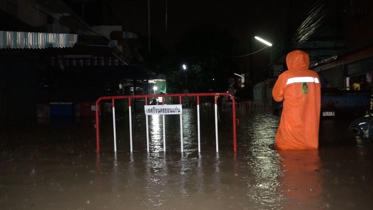 ขณะที่ พื้นที่ จ.ขอนแก่น เจ้าหน้าที่ป้องกันและบรรเทาสาธารณภัย เทศบาลนครขอนแก่น ต้องช่วยกันนำเศษขยะที่ลอยตามน้ำออกจากตระแกรงท่อระบายน้ำ บนถนนมิตรภาพปากซอยสวัสดี เพื่อให้น้ำรอการระบายภายในซอยได้ไหลลงสู่คลองร่องเหมือง หลังจากที่เกิดฝนหนักตั้งแต่เวลา 21.00 น. นานกว่า 2 ชั่วโมง จนทำให้เกิดน้ำรอการระบายได้ท่วมถนนหลายสาย โดยเฉพาะถนนมิตรภาพขาล่องมุ่งหน้าจังหวัดอุดรธานีหน้าตำรวจทางหลวงขอนแก่น มีน้ำท่วมสูงประมาณ 30-40 เซนติเมตร ทำให้ต้องปิดการจราจรช่องคู่ขนานชั่วคราวตั้งแต่ปากซอยสวัสดีถึงหน้าตำรวจทางหลวงขอนแก่น ระยะทางประมาณ 1 กิโลเมตร
