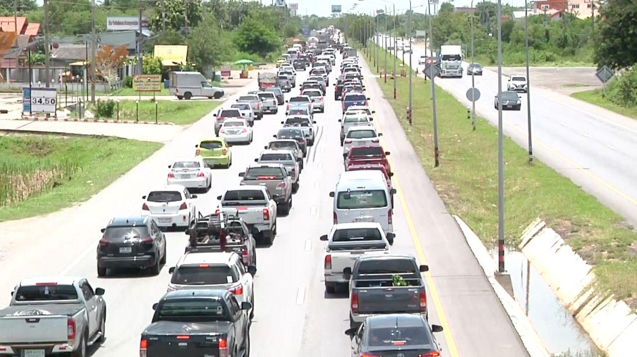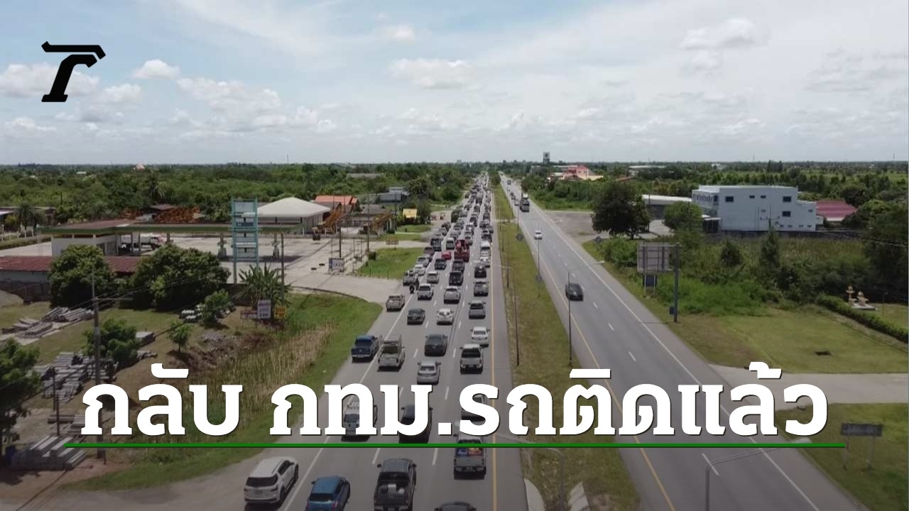 โดยเมื่อสำรวจจากภาพมุมสูง บริเวณแยกตลาดแค พบว่าปริมาณรถเริ่มติดสะสมเป็นทางยาวหลายกิโลเมตร ทางเจ้าหน้าที่ตำรวจทางหลวงต้องคอยควบคุมสัญญาณไฟจราจรด้วยมือเพื่อคอยอำนวยความสะดวกด้านการจราจรตลอดเวลา เพื่อเร่งระบายรถไม่ให้ติดสะสม โดยคาดว่าวันนี้ตลอดทั้งวัน และทั้งคืนจะมีผู้เดินทางกลับเข้ากรุงเทพมหานครเป็นจำนวนมาก.