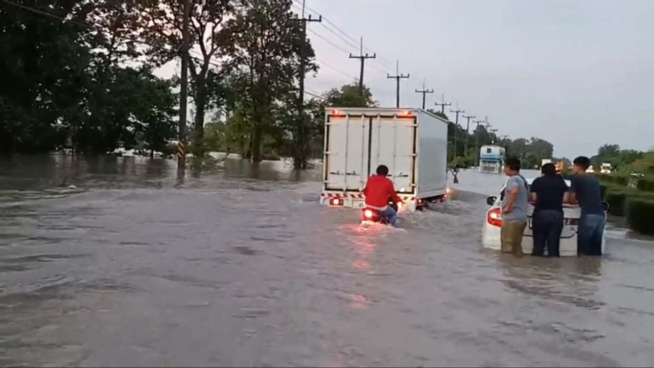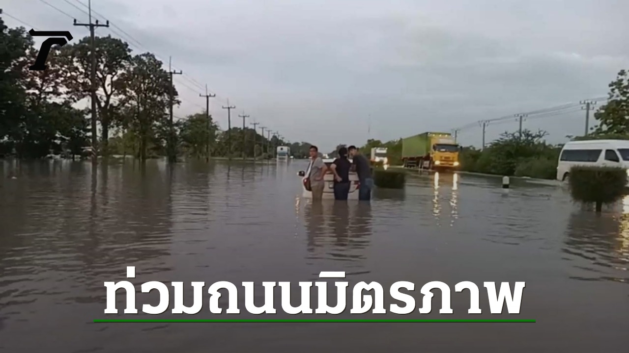 ขอนแก่นอ่วม 26 อำเภอ หลังฝนตกหนักทั้งคืน น้ำท่วมถนนมิตรภาพ 1 กม. รถสัญจรไปมาลำบาก เครื่องดับหลายคัน รวมทั้งเกิดน้ำท่วมขัง พร้อมให้เฝ้าระวังน้ำป่าไหลหลาก