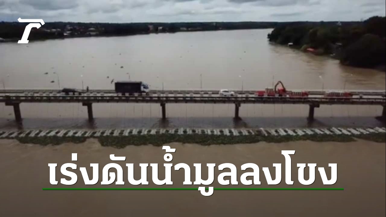 กรมชลประทานติดตั้งเครื่องผลักดันน้ำ 100 เครื่อง เร่งระบายน้ำแม่น้ำมูลบริเวณแก่งสะพือ อ.พิบูลมังสาหาร เพื่อให้ไหลออกแม่น้ำโขงที่ยังต่ำกว่าเกือบ 10 เมตร หวังลดระดับน้ำที่ท่วมชุมชน 2 ฝั่งน้ำมูล