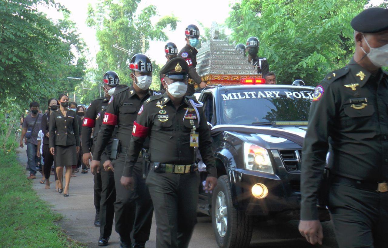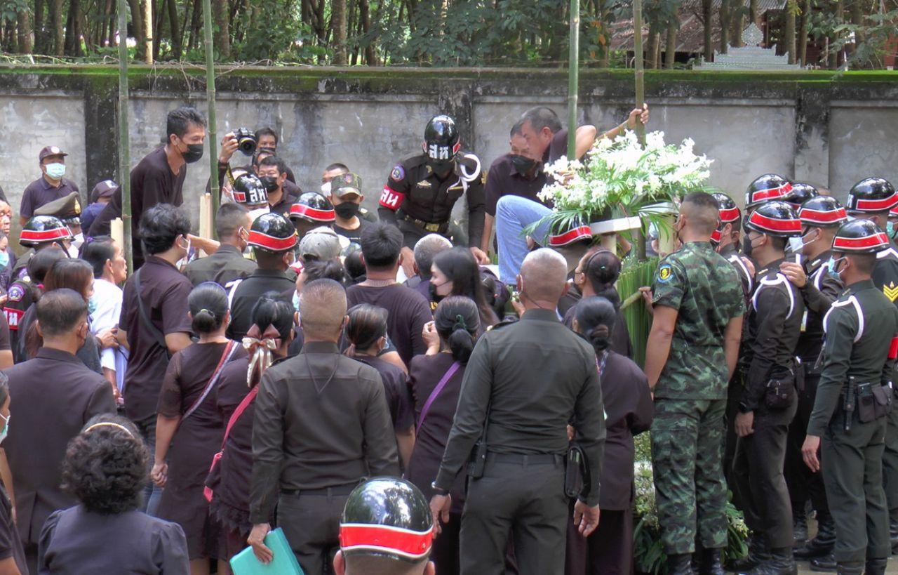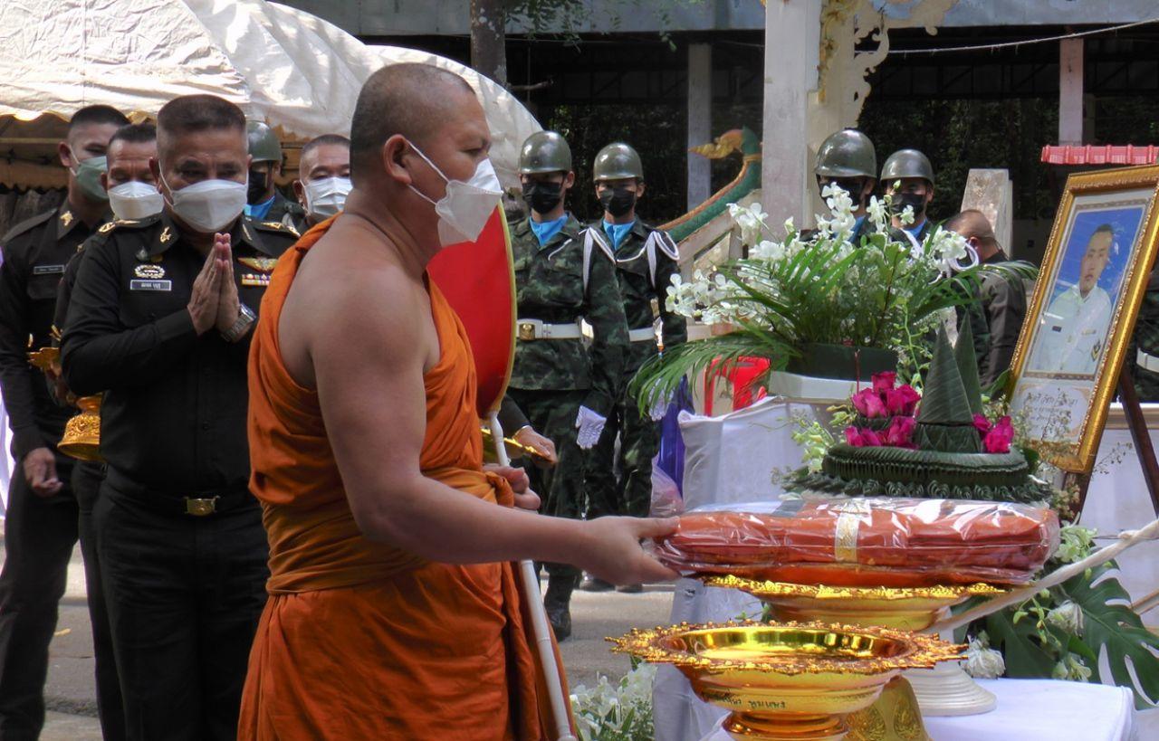 ภายในพิธีมี พล.ต.สภาพร บุญชู ผู้บัญชาการทหารบกที่ 210 นครพนม นำทหารกองเกียรติยศร่วมพิธีฌาปนกิจอย่างสมเกียรติ รวมถึงเป็นประธานในการประกอบพิธีไว้อาลัย ฌาปนกิจศพ โดยมี นางอัมรา อินาลา อายุ 67 ปี แม่ผู้เสียชีวิต รวมถึง ภรรยา คือ นางสาวสกาวเดือน ขันจันทร์ หรือเปิ้ล อายุ 32 ปี ภรรยาผู้เสียชีวิต อุ้มลูกชายคนแรกอายุประมาณ 1 เดือน รวมถึงญาติพี่น้องร่วมไว้อาลัย ส่งวิญญาณสู่สวรรค์เป็นครั้งสุดท้าย ซึ่งเป็นภาพที่หดหู่ที่สุดสำหรับบรรดาญาติพี่น้อง รวมถึงข้าราชการทหารที่มาร่วมงาน เนื่องจาก สิบตรี วัชระ อินาลา หรือ สห.เกิ้ล อายุ 29 ปี ตำแหน่งสารวัตรทหาร เพิ่งแต่งงานเมื่อต้นปี 2564 และเพิ่งมีลูกชายคนแรก คลอดได้อายุประมาณ 1 เดือน ยังไม่เห็นหน้าพ่อ ต้องมาเสียชีวิต ลูกต้องกำพร้าพ่อ