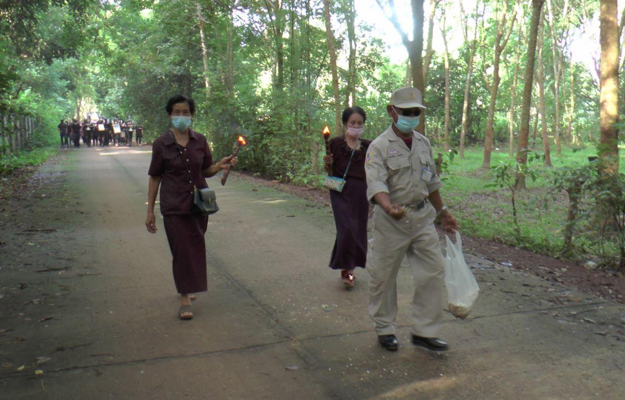 ส่วนเช้าวันนี้มีพิธีเคลื่อนศพออกจากบ้านตั้งแต่เวลา 07.00 น. เพื่อนำไปประกอบพิธีฌาปนกิจศพที่วัดโพนแพงในเมรุชั่วคราว หรือชาวบ้านอีสานเรียกว่ากองฟอน ไม่เผาบนเมรุ เนื่องจากเสียชีวิตกะทันหัน หรือตายก่อนวัยอันสมควร และจะต้องประกอบพิธีให้แล้วเสร็จก่อนเที่ยง ที่สำคัญในการเคลื่อนย้ายศพจะต้องมีหญิงม่ายจำนวน 2 คน จุดกระบองไฟ นำขบวนศพไปถึงสถานที่ประกอบพิธี และมีพระสงฆ์ประกอบพิธีตัดกรรม ตามความเชื่อ และเลี้ยงข้าวปลาอาหาร เครื่องดื่ม มื้อสุดท้าย หน้าศพ ให้ญาติพี่น้อง เพื่อนสนิทได้รับประทานอาหารด้วย ถือเป็นประเพณีความเชื่อที่ยึดถือปฏิบัติมาแต่โบราณ เชื่อว่าจะเกิดสิริมงคลกับครอบครัว รวมถึงป้องกันการเกิดอาเพศกับญาติพี่น้อง และคนในหมู่บ้าน จึงถือปฏิบัติแบบเคร่งครัดตามความเชื่อ