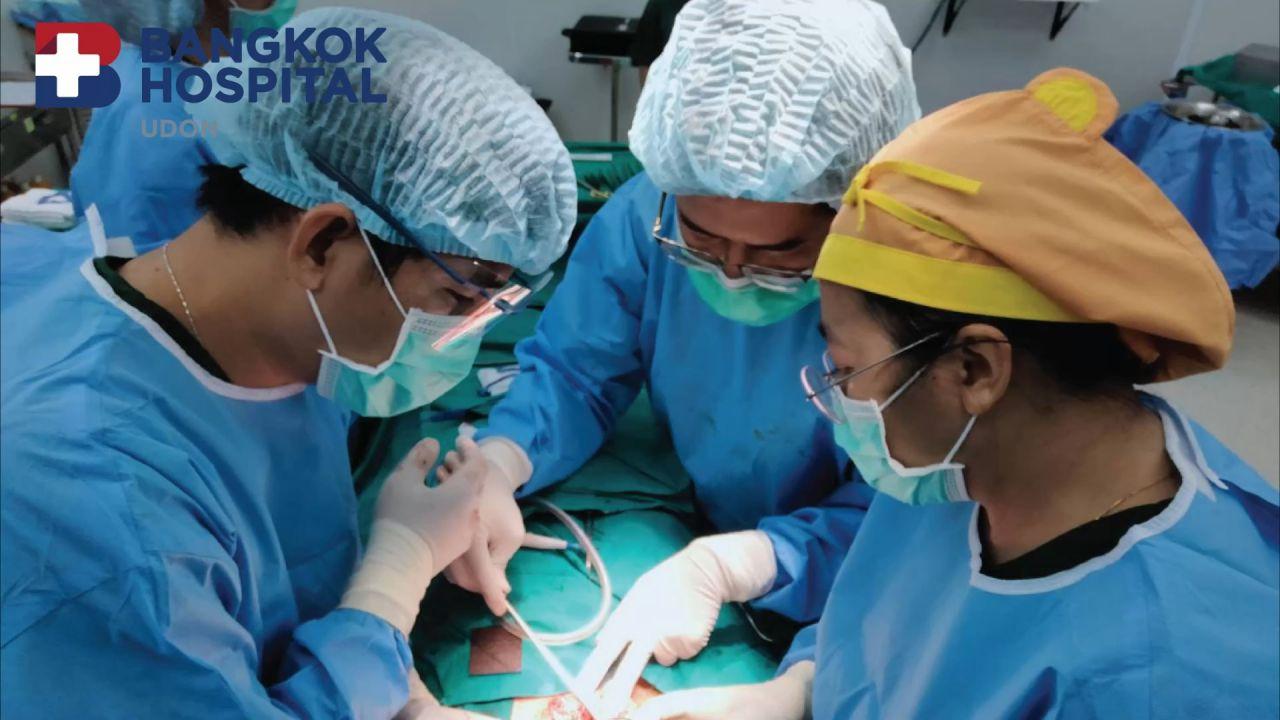 ต่อมาเมื่อเวลา 10.00 น. วันที่ 23 สิงหาคม 2565 ที่โรงพยาบาลกรุงเทพอุดร นายแพทย์อัครัตน์ ศาสตร์สูงเนิน แพทย์ชำนาญการพิเศษด้านหู คอ จมูก พร้อมกับหมอ พยาบาลทีมผ่าตัด และนางธนิดา มันทะลา อายุ 33 ปี ภรรยาเข้าเยี่ยมสามีหลังจากได้รับการผ่าตัดต่อหลอดลมที่ขาด โดยทีมแพทย์ได้แถลงถึงอาการของนายประวิตร มันทะลา ผู้บาดเจ็บ ซึ่งใช้เวลาผ่าตัดเกือบ 5 ชั่วโมง เริ่มตั้งแต่เวลา 20.40-01.00 น. เมื่อคืนที่ผ่านมา ขณะนี้คนไข้นอนพักอยู่ห้องไอซียู 6 เพื่อสังเกตอาการ
