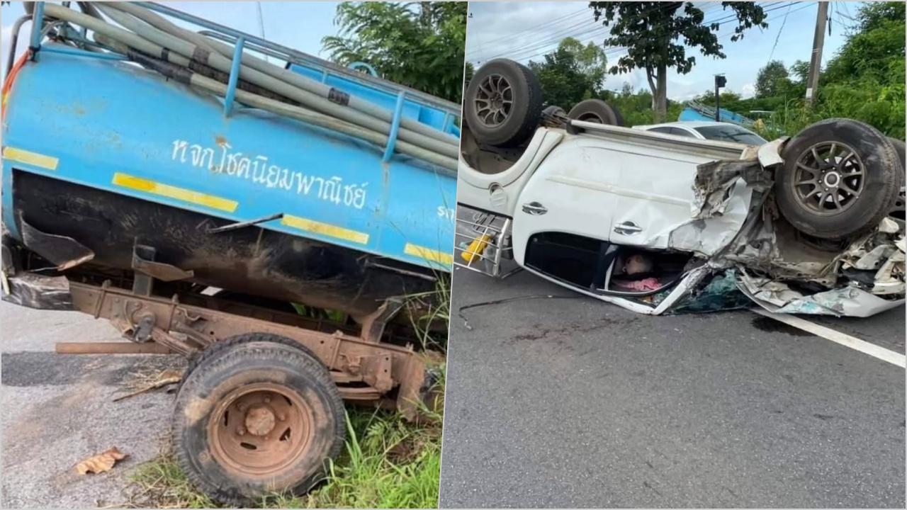 กรณีเมื่อเวลา 12.40 น. วันที่ 22 สิงหาคม ที่ผ่านมา กู้ชีพอุดรธานี 1669 รับแจ้งว่ามีเหตุรถกระบะมิตซูบิชิไทรทัน สีขาว ทะเบียน กล 691 ขอนแก่น ชนท้ายรถดูดสิ่งปฏิกูล สีฟ้า ทะเบียน 70-9194 ขอนแก่น เสียหลักพลิกคว่ำมีผู้บาดเจ็บ 2 ราย เหตุเกิดบนถนนมิตรภาพขา อุดรธานี-ขอนแก่น (ขาออกไป จ.ขอนแก่น) ก่อนถึงป้อมตำรวจทางหลวง ต.ห้วยเกิ้ง อ.กุมภวาปี จ.อุดรธานี จึงพร้อมด้วยกู้ภัยทางหลวง และอาสากู้ภัยประชาธรรมอุดรธานี รีบนำตัวส่งโรงพยาบาลกุมภวาปี ซึ่งเดินทางมากัน 3 คน พ่อแม่และลูก