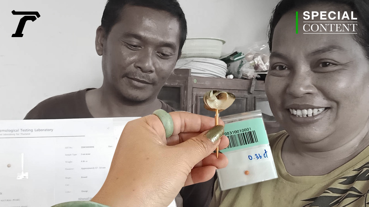 ปรากฏว่า นายพูนสวัสดิ์ ลูกชาย ที่ร่วมวงกินส้มตำด้วยกัน ได้เคี้ยวตรงหัวหอย เคี้ยวถูกก้อนเล็กๆ นึกว่าเป็นก้อนหินเลยเอาออกมาดู พบว่ารูปร่างกลมสีส้ม ตอนแรกก็ไม่ได้คิดอะไรแต่ได้เก็บก้อนนี้ไว้ แล้วไปเล่าให้เพื่อนบ้านฟัง เพราะปกติไม่เคยได้ยินว่ามีอยู่ในหอยเชอรี่ที่เป็นหอยน้ำจืด ส่วนมากจะอยู่ในหอยหวาน ซึ่งเป็นหอยน้ำเค็ม เพื่อนบ้านก็เลยแนะนำให้ส่งไปตรวจที่ห้องปฏิบัติการทดสอบอัญมณี กรุงเทพฯ เมื่อวันที่ 1 ก.ย.ที่ผ่านมา เพื่อดูว่าเป็นมุกประเภทใด และผลเพิ่งออกมาเมื่อวันที่ 6 ก.ย.