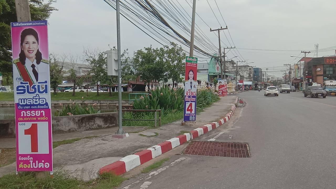 ศึกเลือกตั้งนายก อบจ.ร้อยเอ็ด อาทิตย์ 25 ก.ย.นี้ หาเสียงสุดเข้มข้น สู้กันดุเดือด เบอร์ 1 รัชนี พลซื่อ ขึ้นรูปคู่ "เอกภาพ" พร้อมข้อความ "ดิฉันถูกกลั่นแกล้ง" ส่วนเพื่อไทยมาเต็ม "เศกสิทธิ์ ไวนิยมพงศ์" ใส่เสื้อแดงยืนคู่ "อุ๊งอิ๊ง"