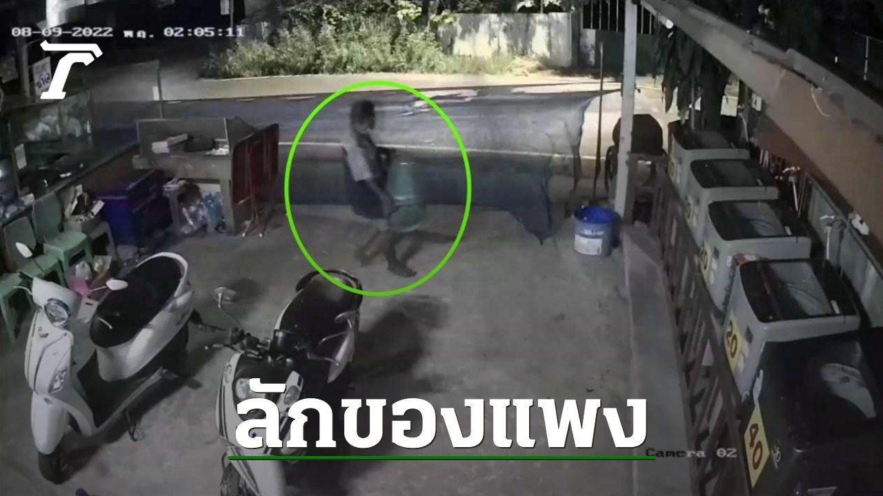 "ไปตรวจดูกล้องวงจรก็พบว่าเวลา 02.03 น. วันที่ 8 กันยายน มีคนร้ายเป็นชายอายุประมาณ 45-50 ปี สวมเสื้อคอโปโลแขนสั้น สีเทาดำ สวมกางเกงขาสั้นสีเทา ไม่สวมรองเท้า จูงรถจักรยานยนต์แบบออโตเมติก สีขาวดำ ไม่ทราบยี่ห้อ เดินผ่านหน้าร้านไป ที่แฮนด์รถจักรยานยนต์ด้านซ้ายมีถุงพลาสติกห้อยอยู่ คาดว่าจะเป็นถุงใส่รองเท้าแตะของคนร้าย ก่อนที่จะจูงรถไปจอดรถไว้ข้างถังขยะข้างร้าน แล้วเดินย้อนกลับเข้ามาในร้านด้วยเท้าเปล่า เข้ามาในร้านย่องสำรวจหาสิ่งของมีค่าภายในร้าน เริ่มจากเดินวนอยู่ด้านหน้าเครื่องซักผ้าหยอดเหรียญ 5 เครื่อง ก่อนเดินเข้าไปในครัวร้านอาหารตามสั่ง ถอดหัวถังแก๊สออก อุ้มถังแก๊สออกไปทางหน้าร้านขึ้นรถจักรยานยนต์ขับหลบหนีไป โดยระหว่างอุ้มถังแก๊สขึ้นรถจักรยานยนต์ มีรถขับผ่านมา คาดว่าคนร้ายเกิดตกใจ ทำรองเท้าแตะสีดำ 1 ข้าง หล่นทิ้งไว้ในที่เกิดเหตุ"