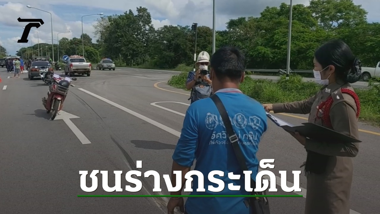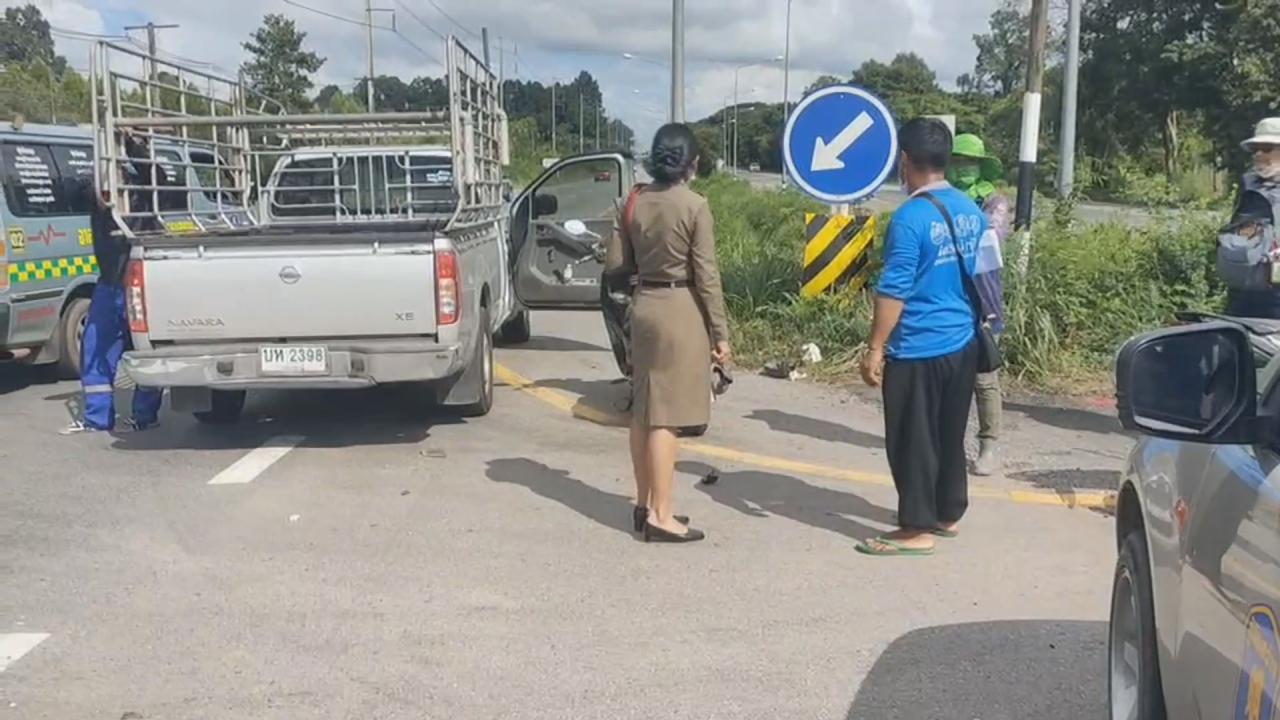 สุดยื้อ สาวสองขี่จยย.จะเข้าจุดยูเทิร์น ถูกปิกอัพชนท้าย ร่างกระเด็น 100 เมตร หัวกระแทกพื้น คอหัก ดับสยองกลางถนน
