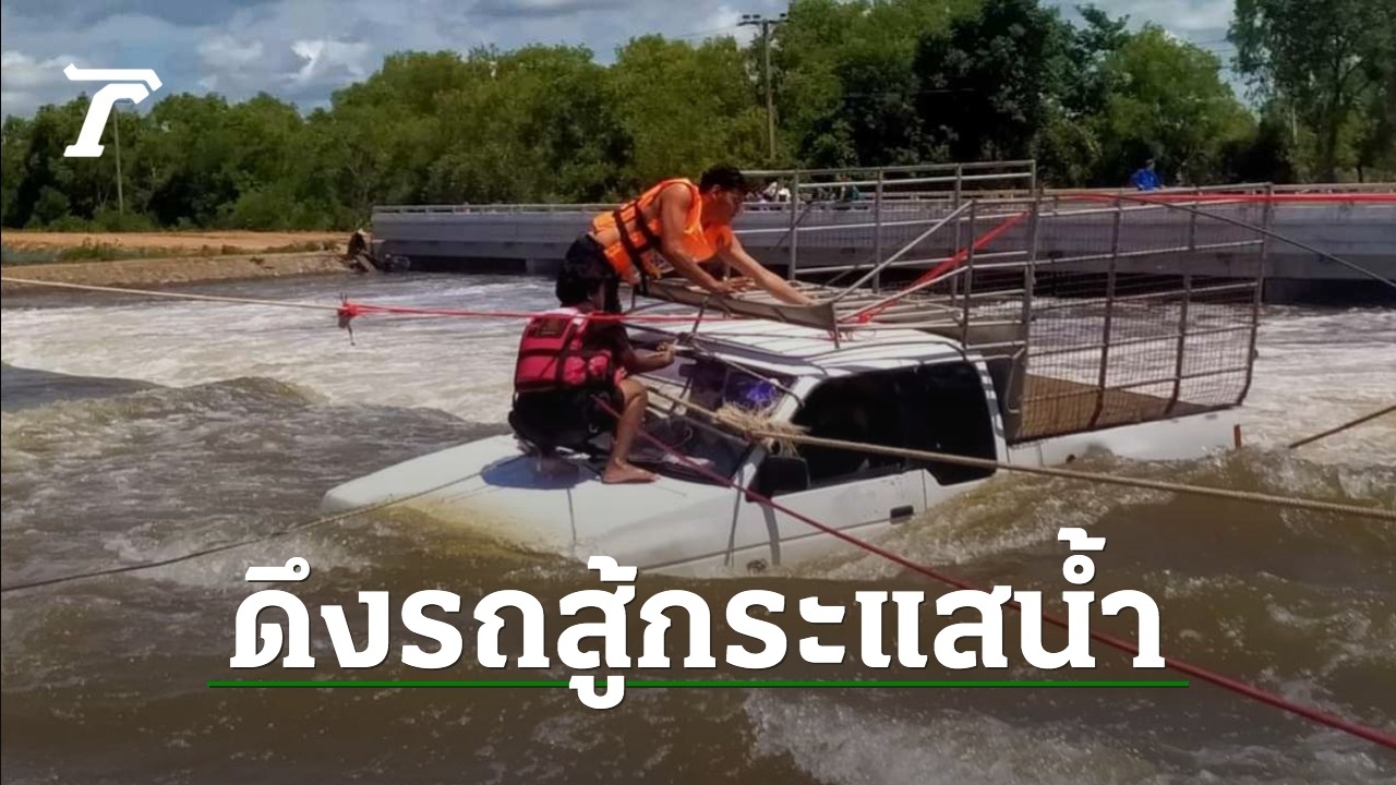 ระทึกสองตายายที่ศรีขรภูมิ ขับกระบะข้ามฝายน้ำล้นห้วยลำพอก จนท.เตือนแล้วก็ไม่ฟัง สุดท้ายขับลงไปแล้วโดนกระแสน้ำที่เชี่ยวพัดเกือบตกลงคลอง กู้ภัยสุรินทร์ และชาวบ้านช่วยกันลากขึ้นฝั่งไว้ได้ทัน