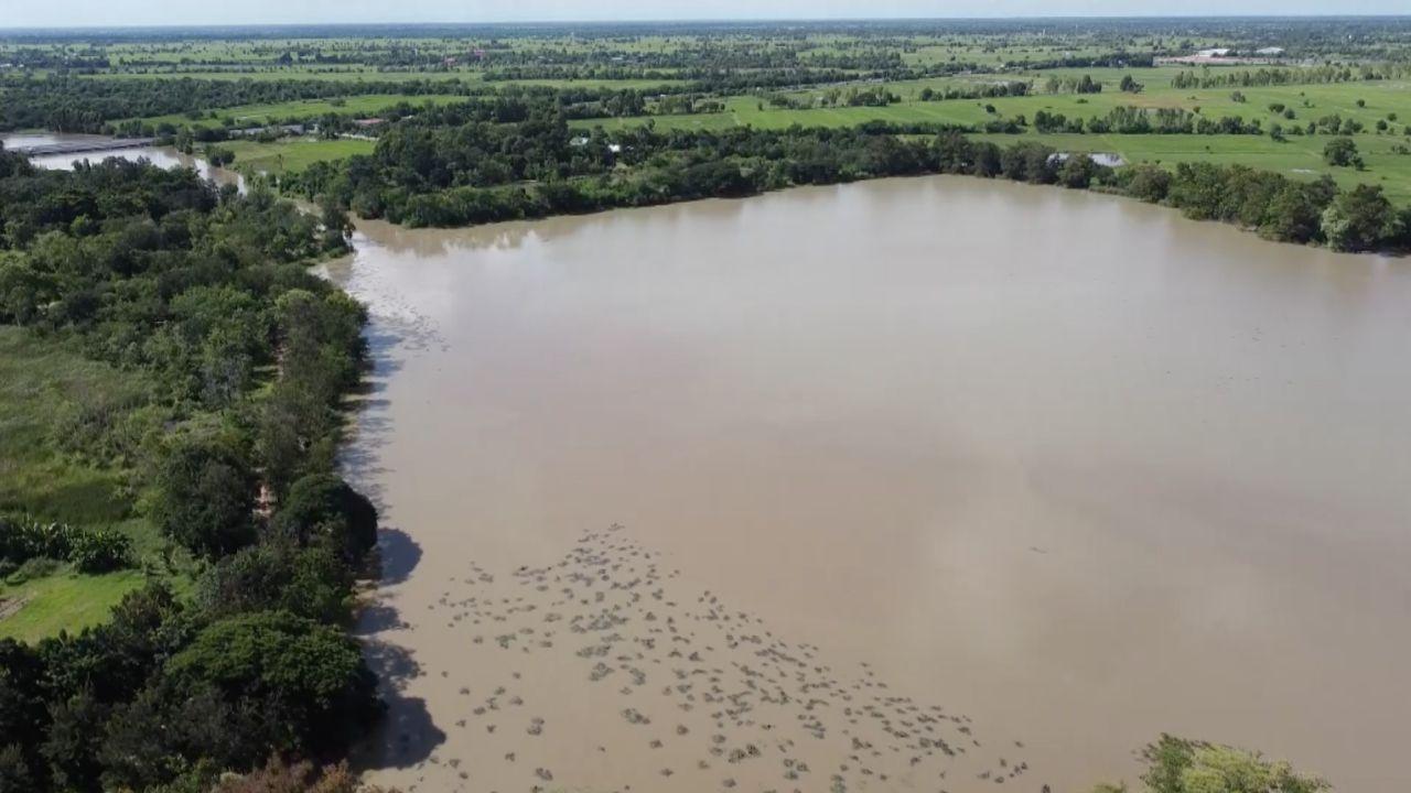 ล่าสุด วันนี้ (17 กันยายน 2565) พบว่า ปริมาณน้ำจากอ่างเก็บน้ำต่างๆ ในจังหวัดนครราชสีมา รวมทั้งอ่างเก็บน้ำลำเชียงไกรตอนบน จากอำเภอด่านขุนทด ได้เร่งระบายน้ำในอ่างฯ ออกต่อเนื่อง เพื่อเตรียมรับมวลน้ำก้อนใหม่ที่จะไหลเข้าอ่างเก็บน้ำ ซึ่งลำน้ำลำเชียงไกรในพื้นที่อำเภอโนนสูงก็มีปริมาณน้ำจำนวนมากไหลมาลงลำน้ำ จนล้นฝายเก็บน้ำบ้านส้ม ในตำบลดอนชมพู อำเภอโนนสูง ซึ่งจากภาพมุมสูง จะเห็นว่าบางจุดปริมาณน้ำล้นตลิ่งไหลเข้าท่วมนาข้าวเป็นบริเวณกว้าง และมวลน้ำทั้งหมดกำลังจะไหลลงลำน้ำมูลบริเวณบ้านสัมฤทธิ์ ตำบลสัมฤทธิ์ อำเภอพิมาย ก่อนที่จะไหลต่อไปยังเขื่อนเก็บน้ำพิมาย จึงฝากเตือนประชาชนที่อาศัยอยู่ติดกับลำน้ำธรรมชาติ ได้เฝ้าระวังน้ำล้นตลิ่งเข้าท่วมบ้านเรือน พื้นที่ทางการเกษตร และให้เฝ้าติดตามประกาศจากทางราชการอย่างใกล้ชิดด้วยในระยะนี้.