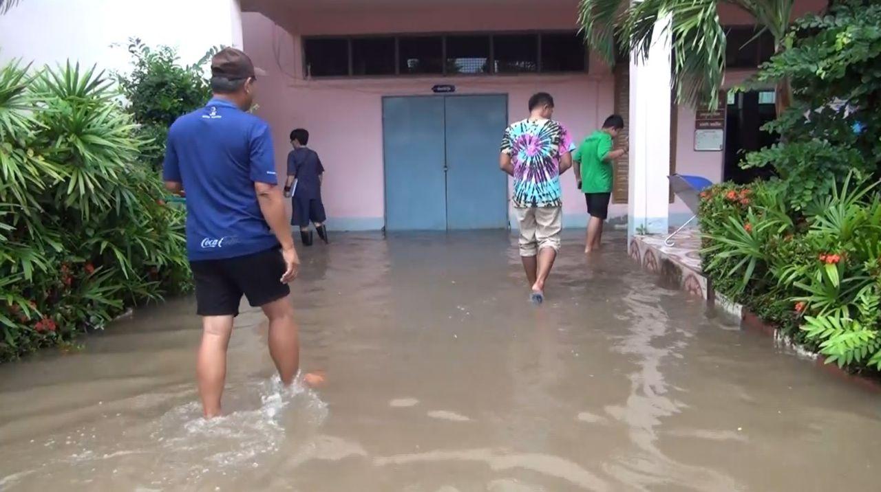 นำ้จากโคราชไหลลงมาสมทบลำสะแทดล้นเอ่อไหลท่วมพื้นที่โดยรอบโรงเรียนบ้านบุ่งเบา อ.พุทไธสง บุรีรัมย์ 30-50 ซม. ครู และจนท.เร่งย้ายอุปกรณ์การเรียน และข้าวของต่างๆ ขึ้นที่สูง ผอ.สั่งปิดเรียน 5 วัน