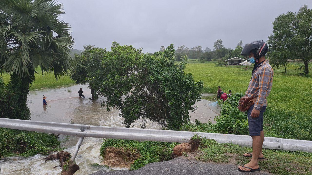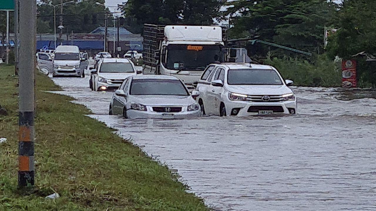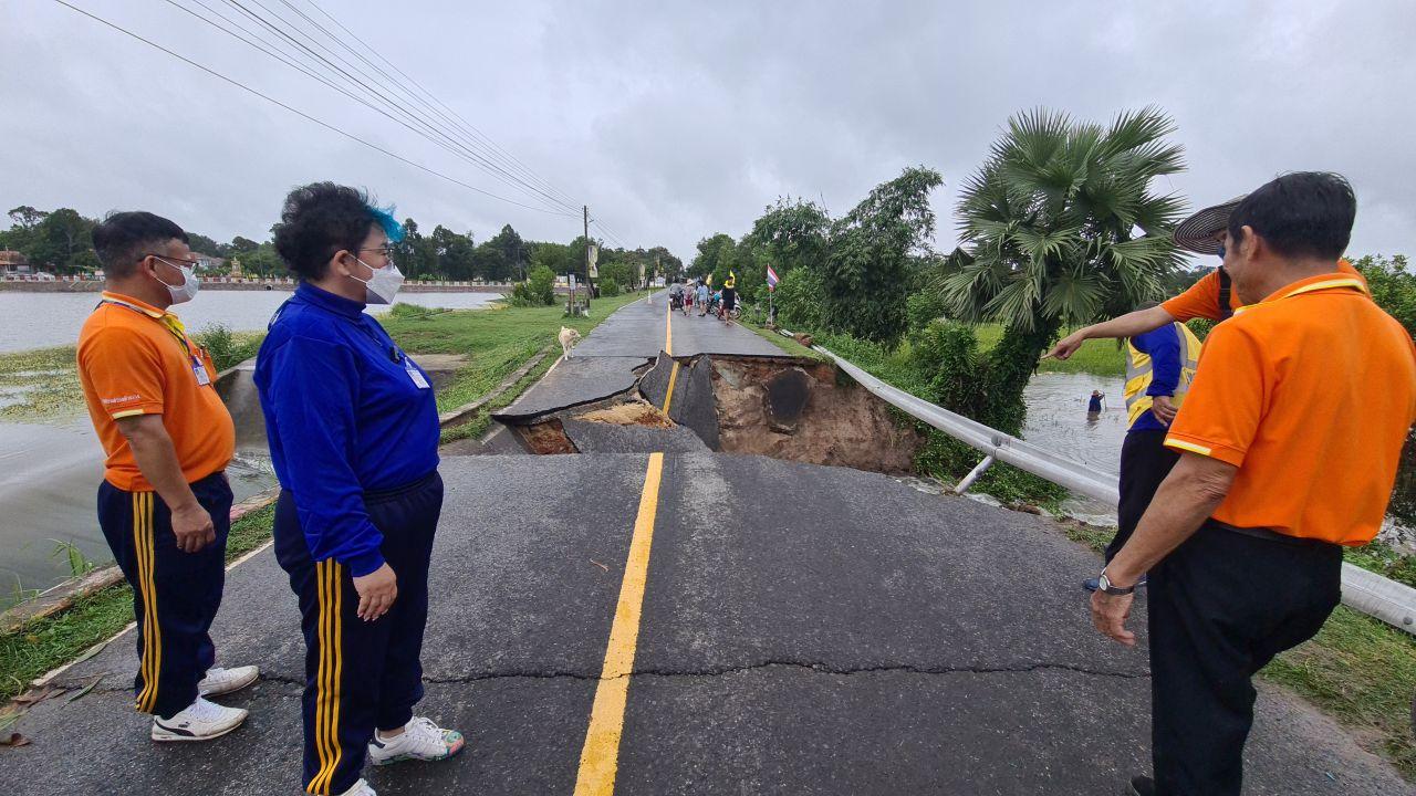 น้ำท่วมที่ อ.วารินชำราบ ขยายวงท่วมถนนเลี่ยงเมือง วารินชำราบ-พิบูล บางจุดสูงกว่าครึ่งเมตร ทำรถเล็กจอดตายเพียบ ด้านอ่างเก็บน้ำหนองโสกใหญ่ น้ำเซาะถนนสันอ่างแตกยาว 5 เมตร ท่วมที่นากว่าร้อยไร่
