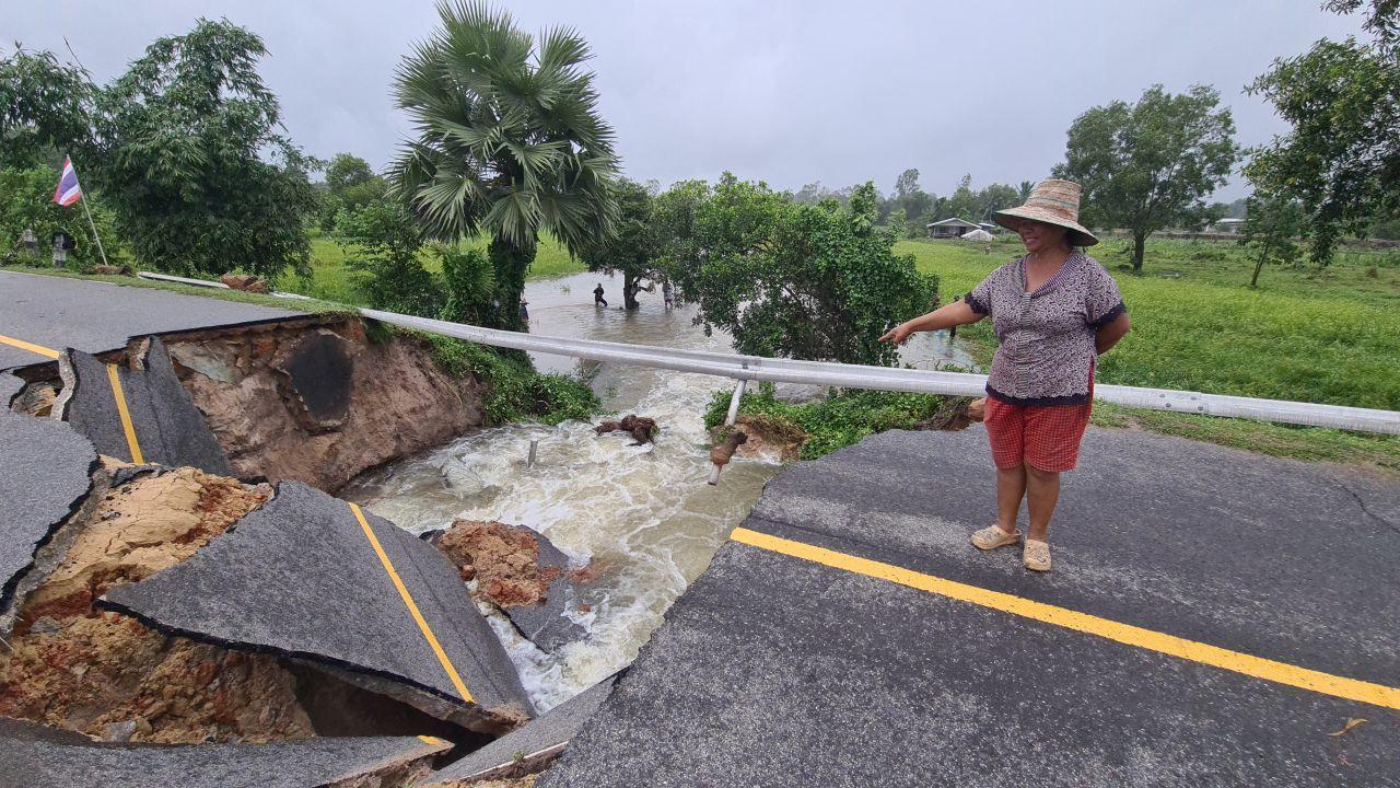 เมื่อวันที่ 29 ก.ย.2565 ผู้สื่อข่าวรายงานว่า หลังจากที่พายุโนรูเข้าเขตประเทศไทยเมื่อช่วงเย็นวาน ทำให้ในพื้นที่มีฝนตกหนักตลอดทั้งคืนจนถึงเช้า ทำให้ปริมาณน้ำในพื้นที่อำเภอวารินชำราบ จ.อุบลราชธานี เพิ่มสูงขึ้นและกระจายวงกว้างออกไปในหลายพื้นที่ ล่าสุดมวลน้ำเขตเทศบาลเมืองวารินชำราบได้ไหลมาท่วมทางหลวงหมายเลข 231 วารินชำราบ-พิบูล ห่างจากแยกเจริญศรี เพียง 200 เมตร มวลน้ำทำให้ถนนดังกล่าวส่งผลให้มีน้ำท่วมสูงบางจุดถึง 50 เซนติเมตร ยาวกว่า 300 เมตร ทำให้รถเล็กไม่สามารถผ่านได้ ต้องจอดรถทิ้งไว้กลางถนน เพราะไม่สามารถไปต่อได้ ต้องใช้รถสไลด์มาเคลื่อนย้ายออกจากพื้นที่