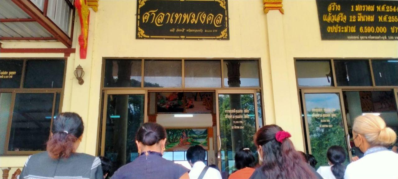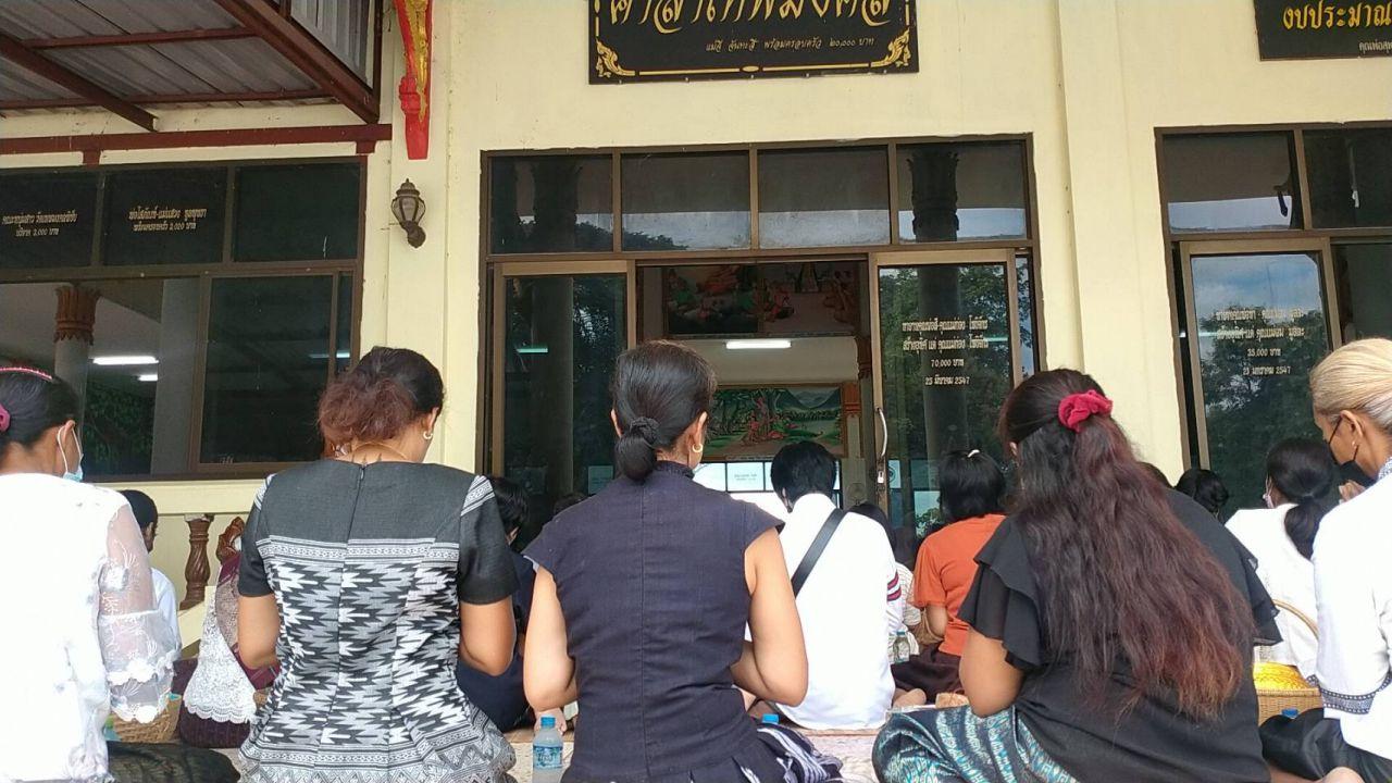 ชาวบ้านไปวัดเทพมงคลพิชัย จ.หนองบัวลำภู ร่วมทำบุญตักบาตรเทโวในวันออกพรรษา เพื่ออุทิศส่วนกุศลแก่ผู้เสียชีวิตในเหตุกราดยิง ขณะที่การก่อสร้างเมรุชั่วคราวกำลังเร่งดำเนินการให้เสร็จใน 11 ต.ค. 2565