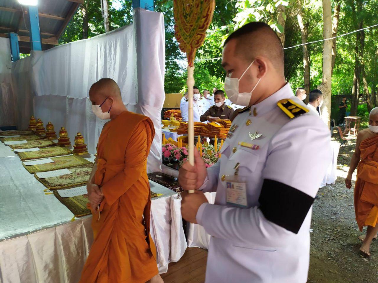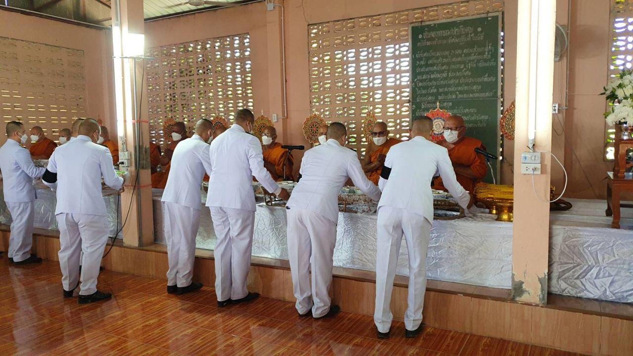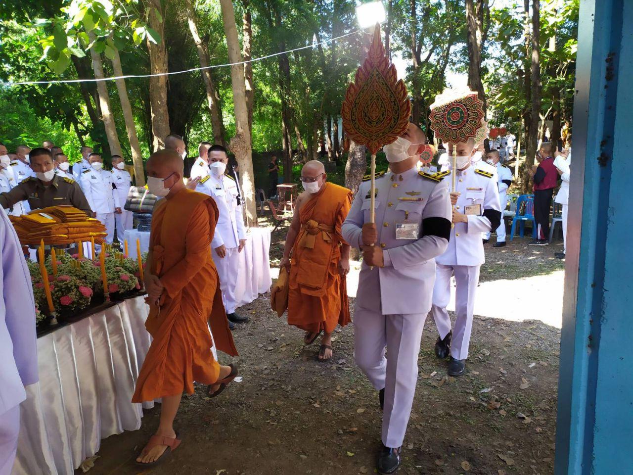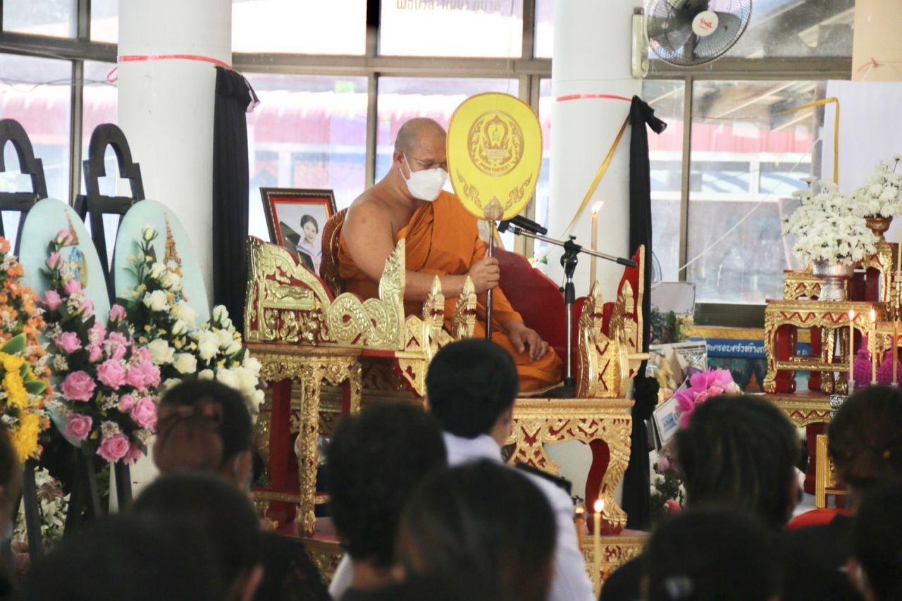 จากนั้นพระสงฆ์แสดงธรรมเทศนา 1 กัณฑ์พระสงฆ์สงฆ์สมณศักดิ์ 10 รูป สวดถวายพระพร จากนั้น จนท.ลาดภูษาโยง เชิญผ้าไตรพระราชทาน จำนวน 10 ไตร และทอดผ้าไตรพระราชทานบังสกุล 10 ไตร พระสงฆ์สมณศักดิ์พิจารณาผ้าไตรบังสกุล ประธานกรวดน้ำเป็นเสร็จพิธี